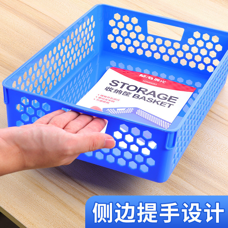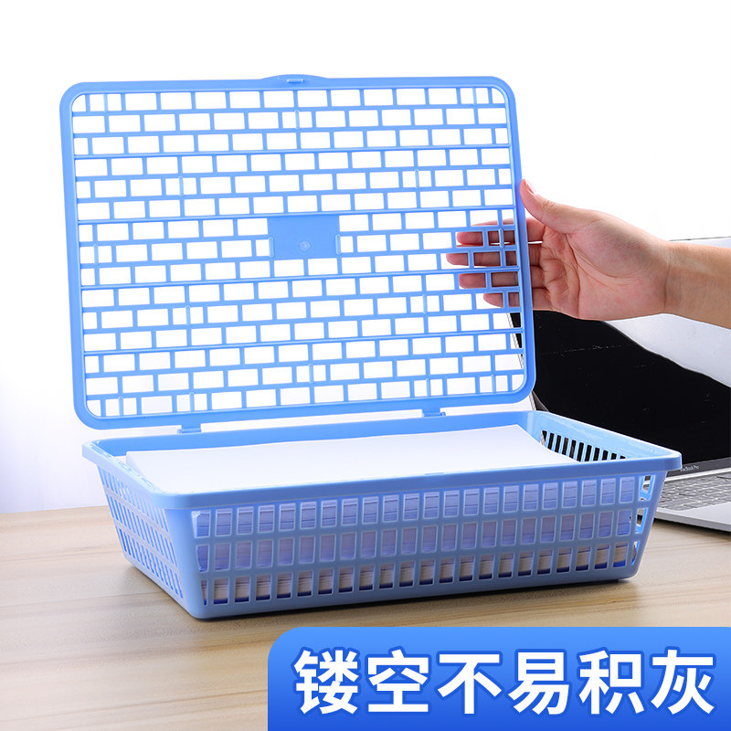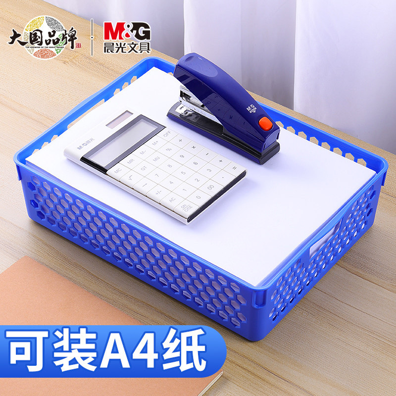 晨光蓝色塑胶文件框带盖公文篮文具带盖网状公文篮文件篮文件筐A4收纳筐收纳盒文件架资料整理栏多层文件篮