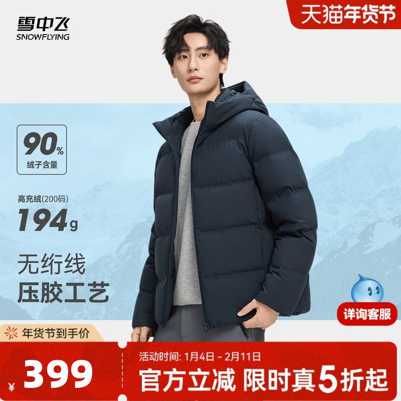 【高端90绒】雪中飞2025冬季加厚男士户外短运动保暖压胶羽绒服