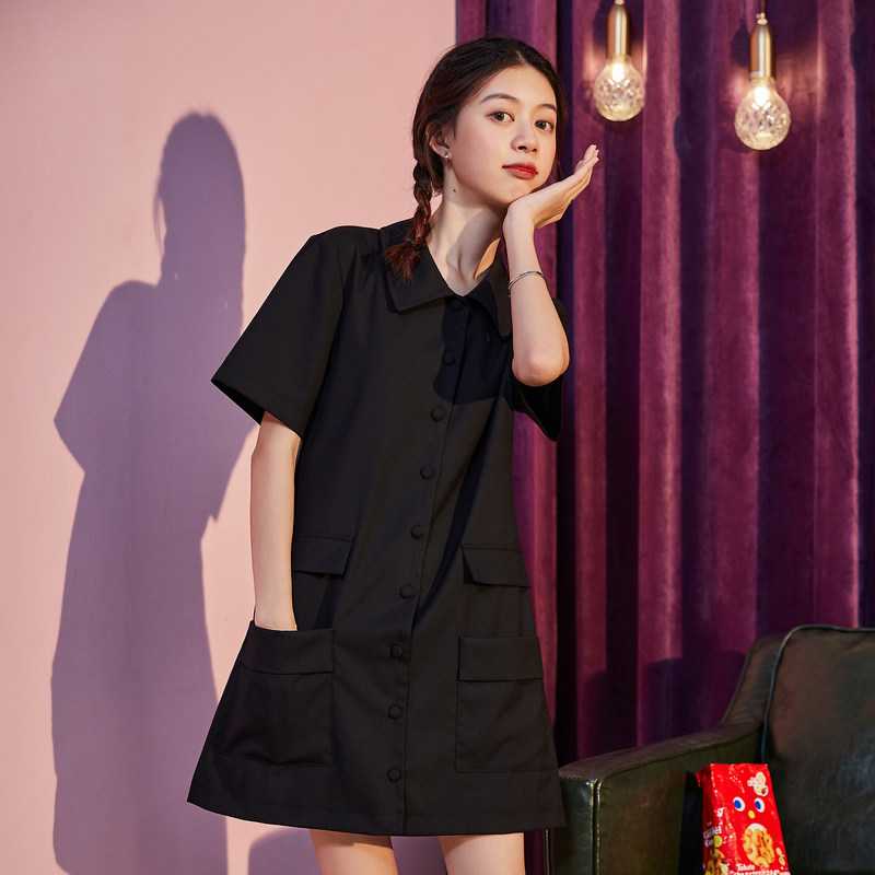 唐狮韩版潮流西装时尚连衣裙女中长款短款裙子夏季连衣裙工装口袋
