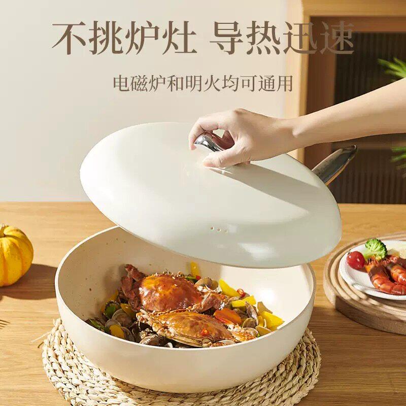 卡罗特不粘锅炒锅家用麦饭石炒菜锅平底不沾钛锅电磁炉燃气灶专用