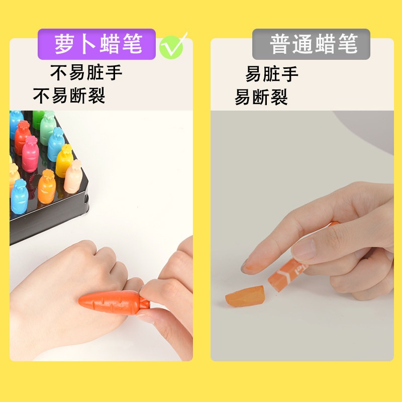 新品儿童胡萝卜蜡笔食品级不脏手不粘手油画棒幼儿园不沾手塑料蜡笔画画笔36色蜡笔小学生蜡笔易上色鲜艳