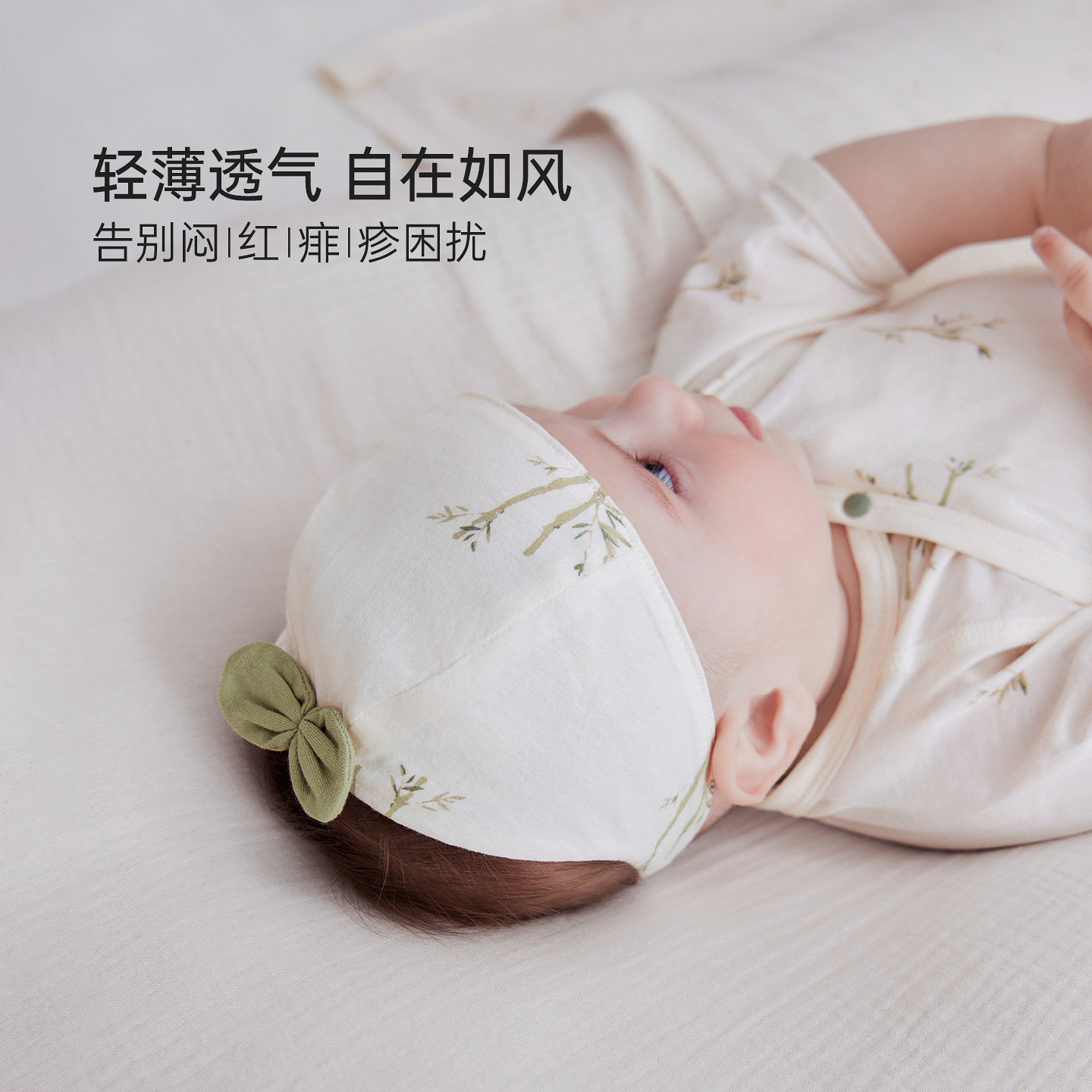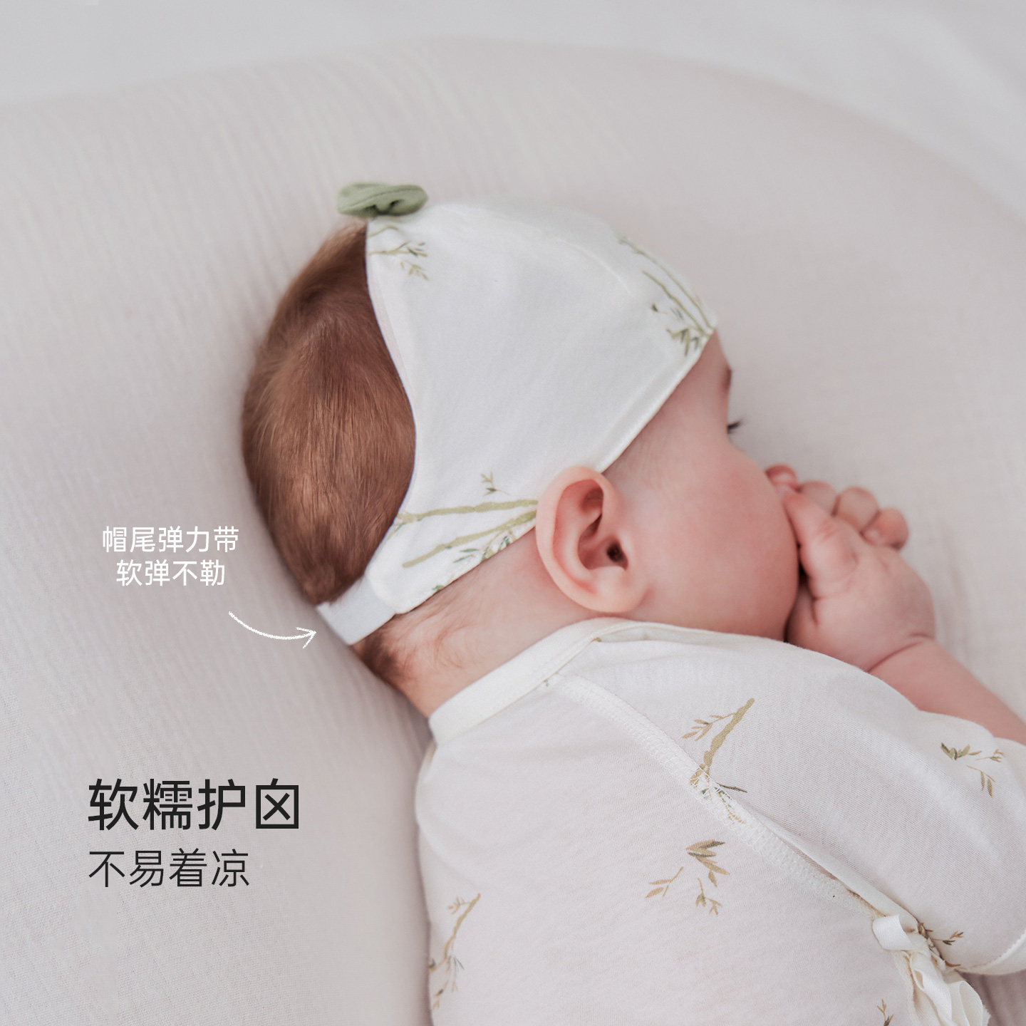 嫚熙婴儿帽子牛油果丝柔棉新生婴儿无骨绑带胎帽初生宝宝胎帽