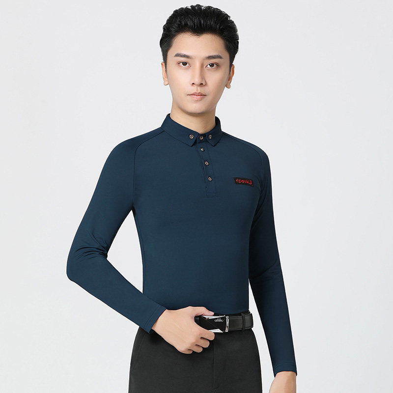 丹宝罗旗舰店男士舞蹈练功服斜肩帅气衬衣领长袖拉丁舞服春秋新款