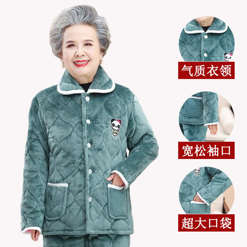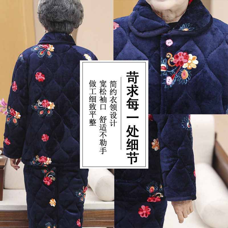 奶奶冬装睡衣套装女中老年人加厚保暖妈妈居家服两件套新款厚款