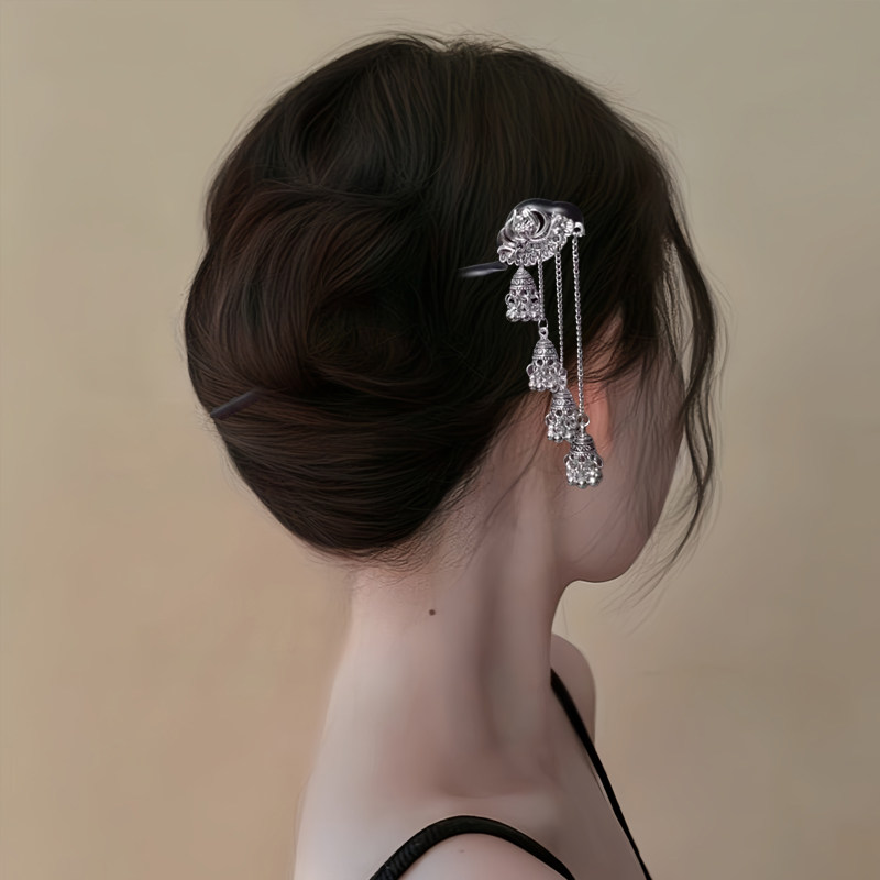 苗疆神女!新中式国风流苏发饰!铃铛发簪苗族古银风挽发发钗拎环