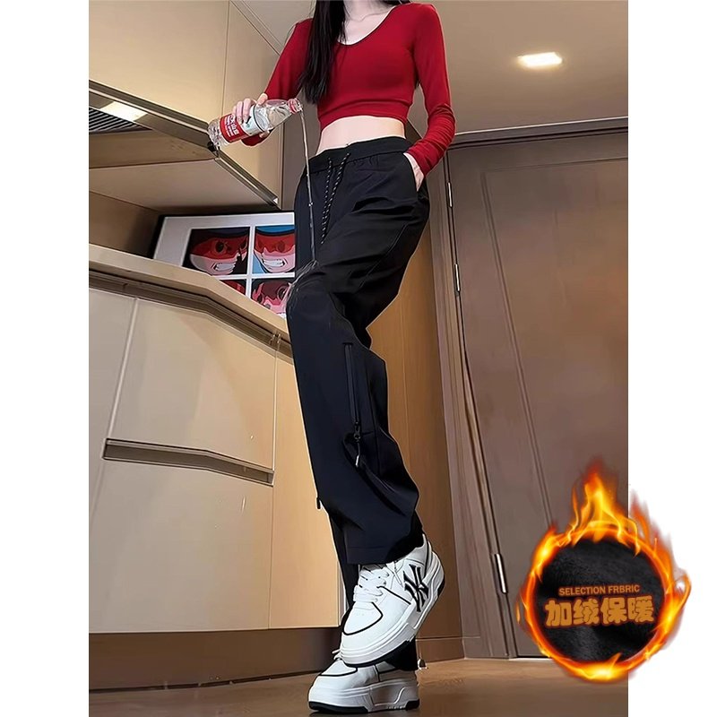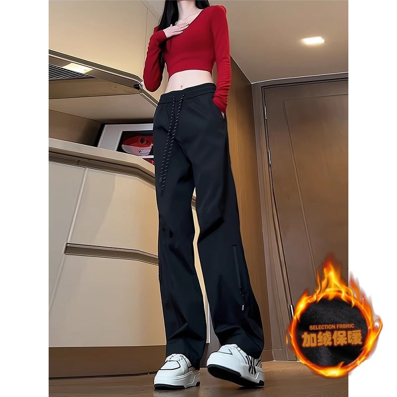 鸿星尔克加绒运动裤女冬季女士卫裤休闲裤小个子女裤加厚裤子女款