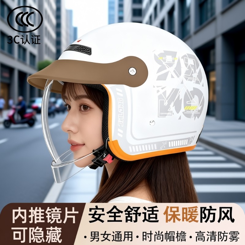 新国标3c认证电动车头盔电瓶摩托车安全帽夏季半盔四季通用镜片