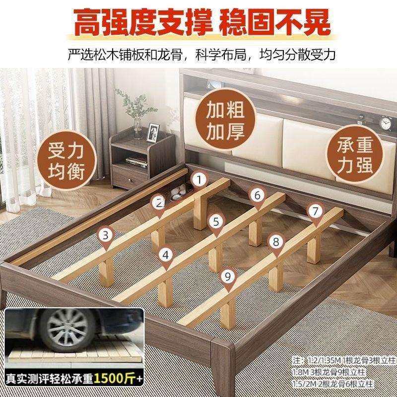 实木床双人1.8x2米主卧家用1.5米小户型出租房民宿1.2m简易单人床