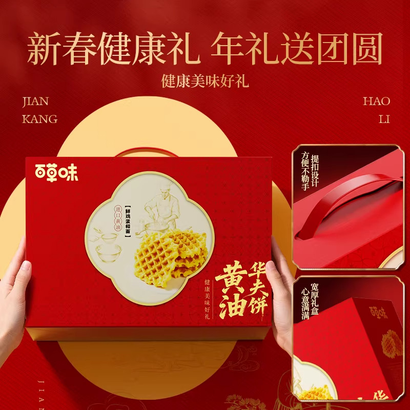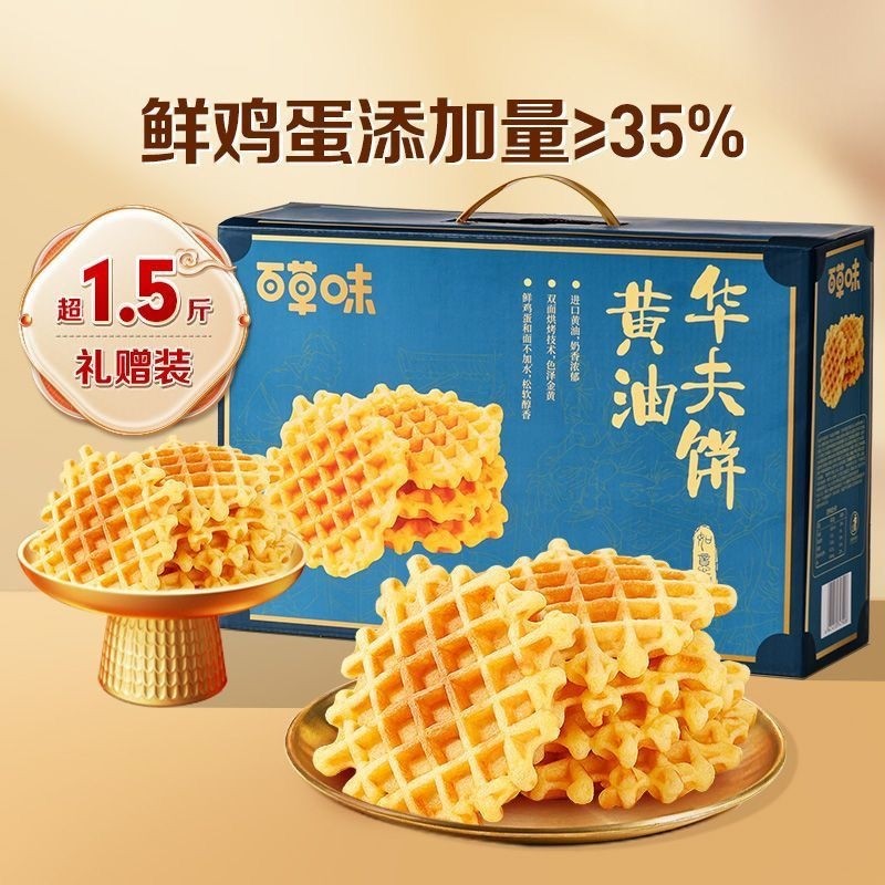百草味黄油华夫饼礼盒800g早餐食品整箱小吃营养蛋糕面包零食送礼