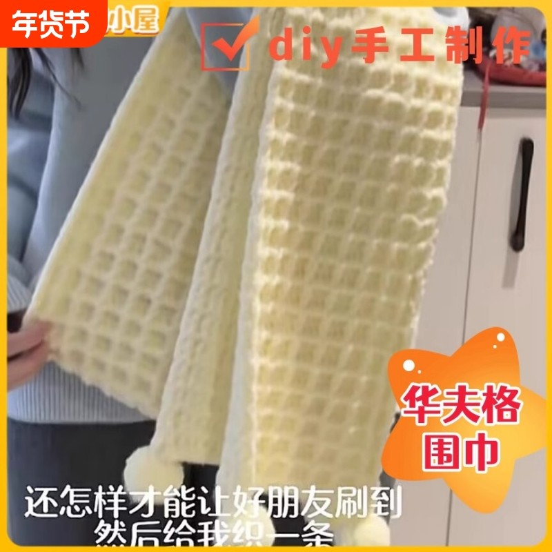 华夫饼围巾毛线手工diy编织松鼠绒围脖材料包冬季送男女朋友礼物