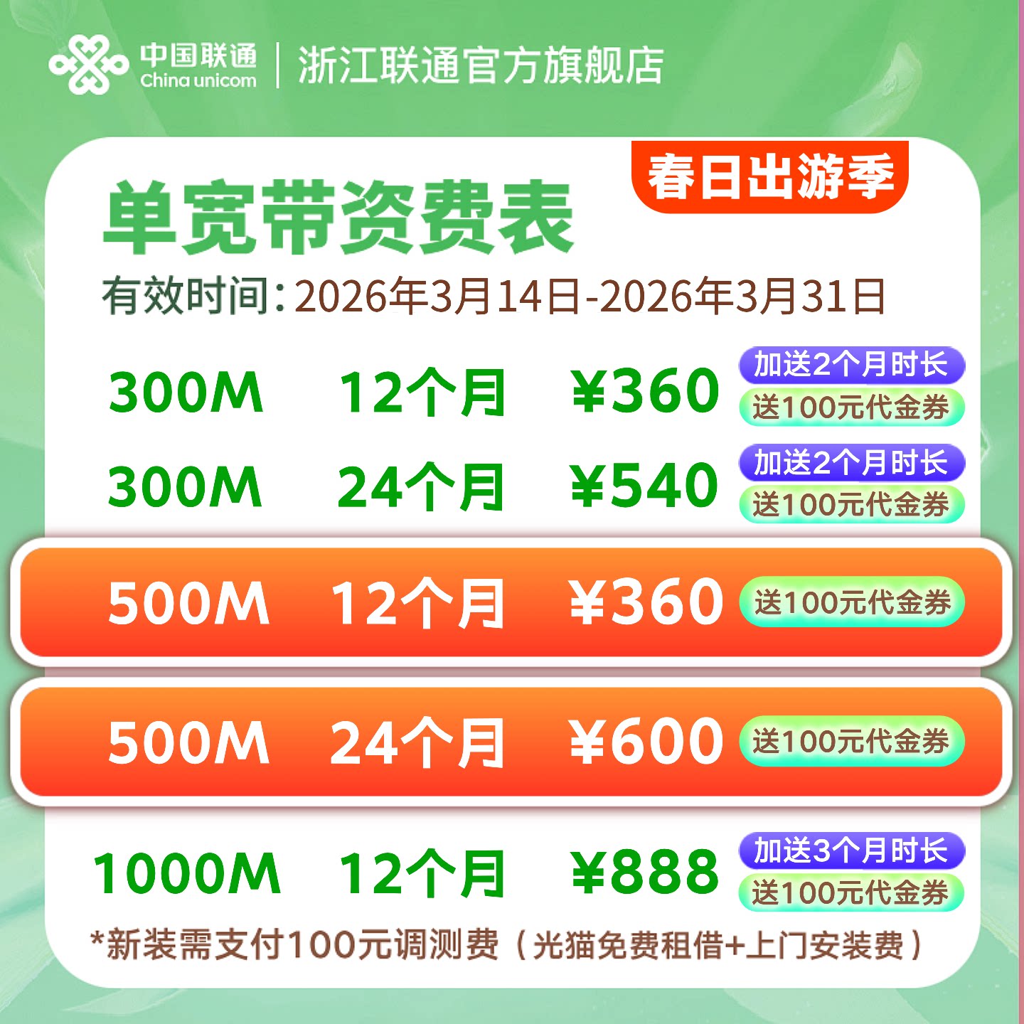 联通宽带300M~1000M包年特惠浙江全省宽带办理安装杭州宁波等新装
