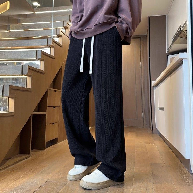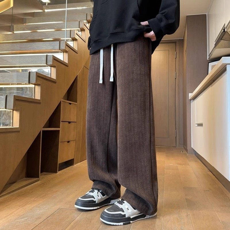 麦穗纹休闲裤子男款秋冬直筒宽松大码男裤潮流重磅加绒阔腿卫裤秋