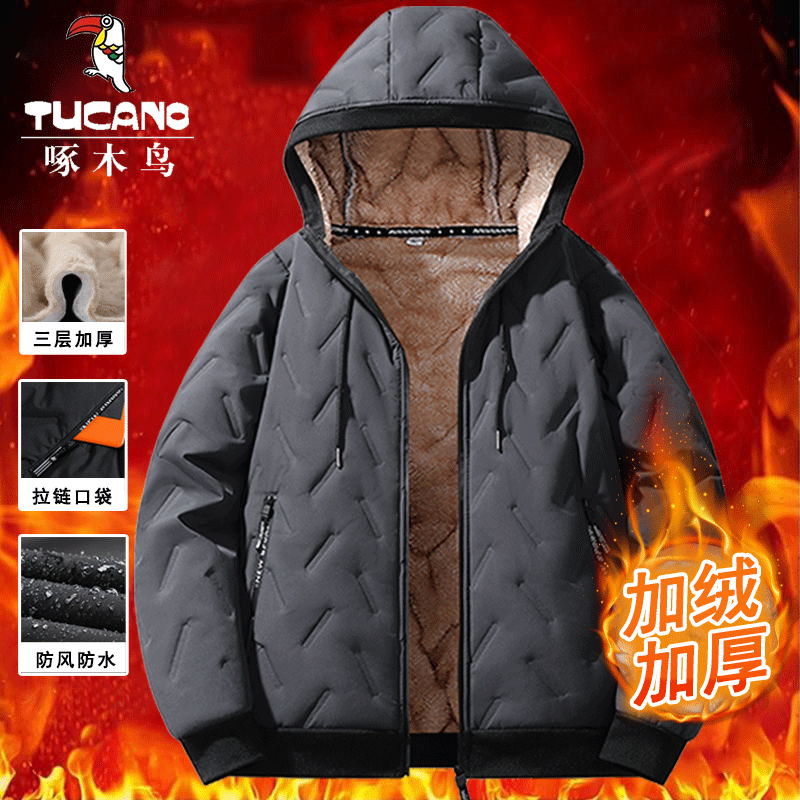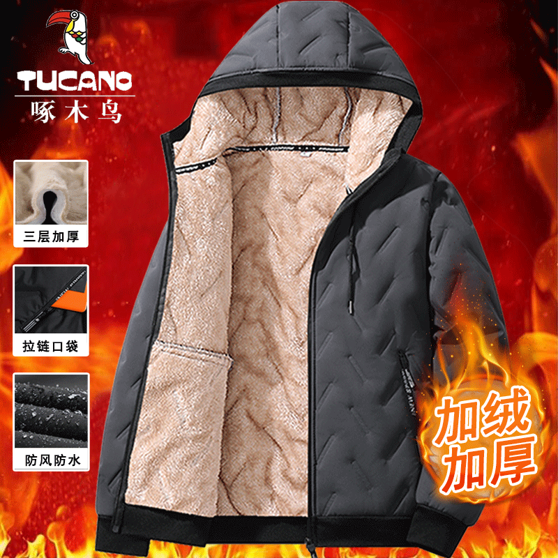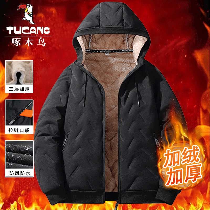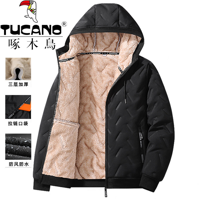 啄木鸟羊羔绒棉衣外套男士棉袄中年加绒加厚防寒服棉服男休闲黑色