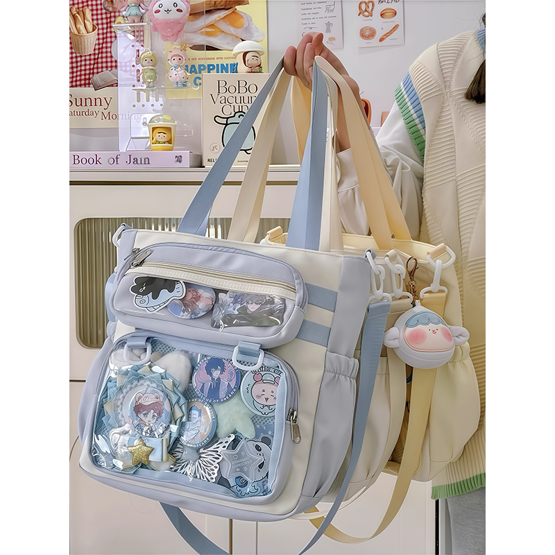文具盒痛包斜挎包小食量日系少女二次元大容量手提补习袋蓝色粉色