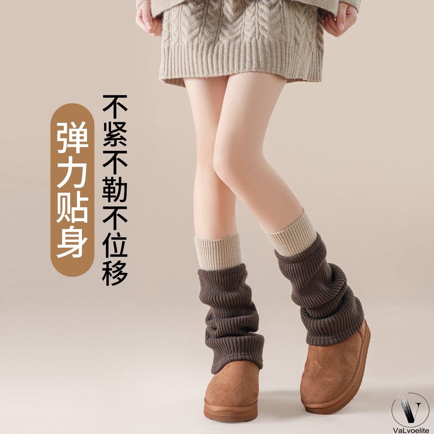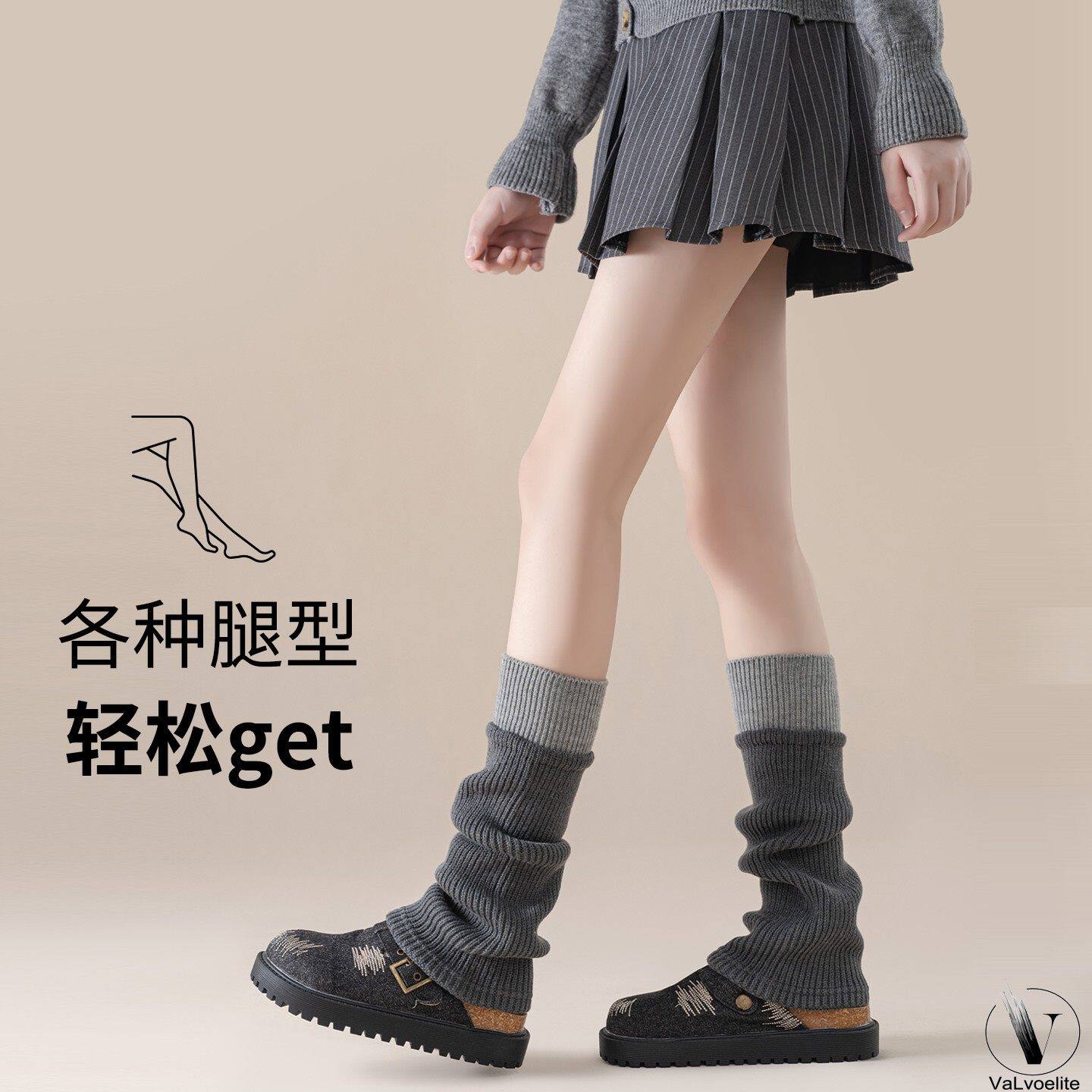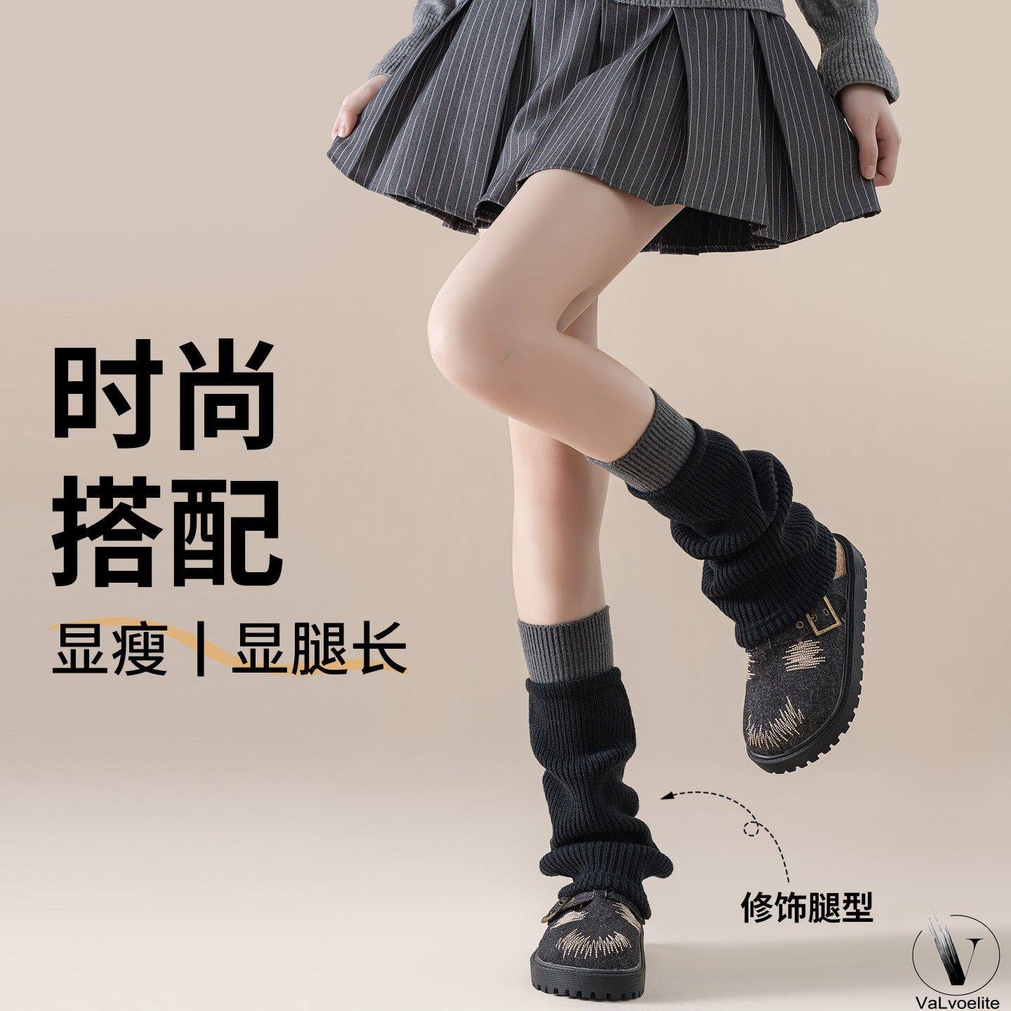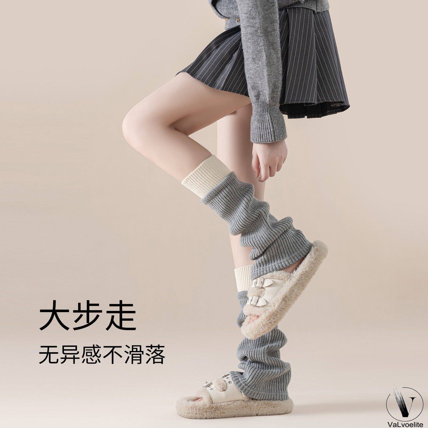 羊毛袜套女冬季保暖中筒袜针织腿套堆堆袜显瘦搭配靴子黑色修饰
