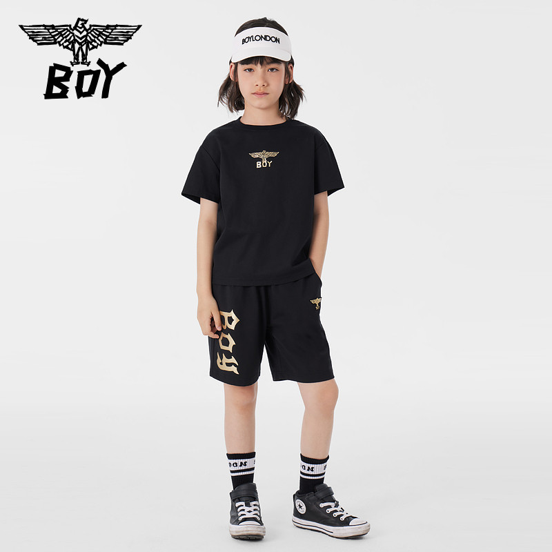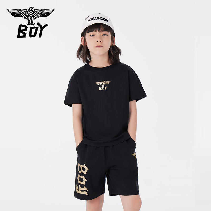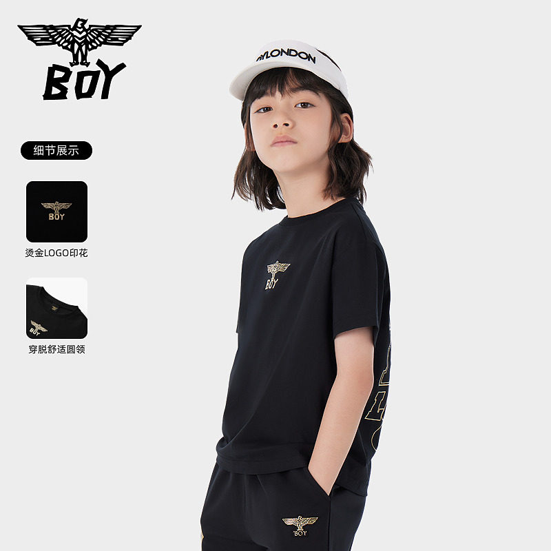 BOY童装 夏季 儿童短袖潮酷后背字母童趣印花百搭短袖男童女童