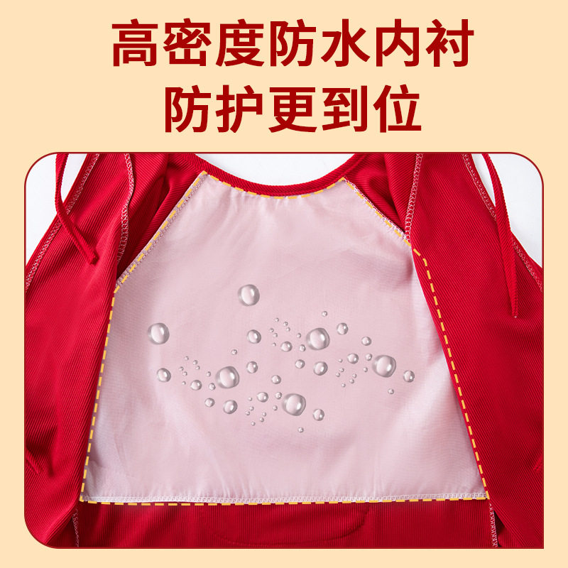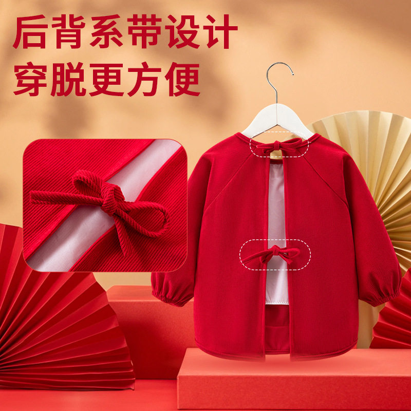 婧麒儿童罩衣秋冬季女孩宝宝防水防脏反穿衣中小童红色新年款外衣