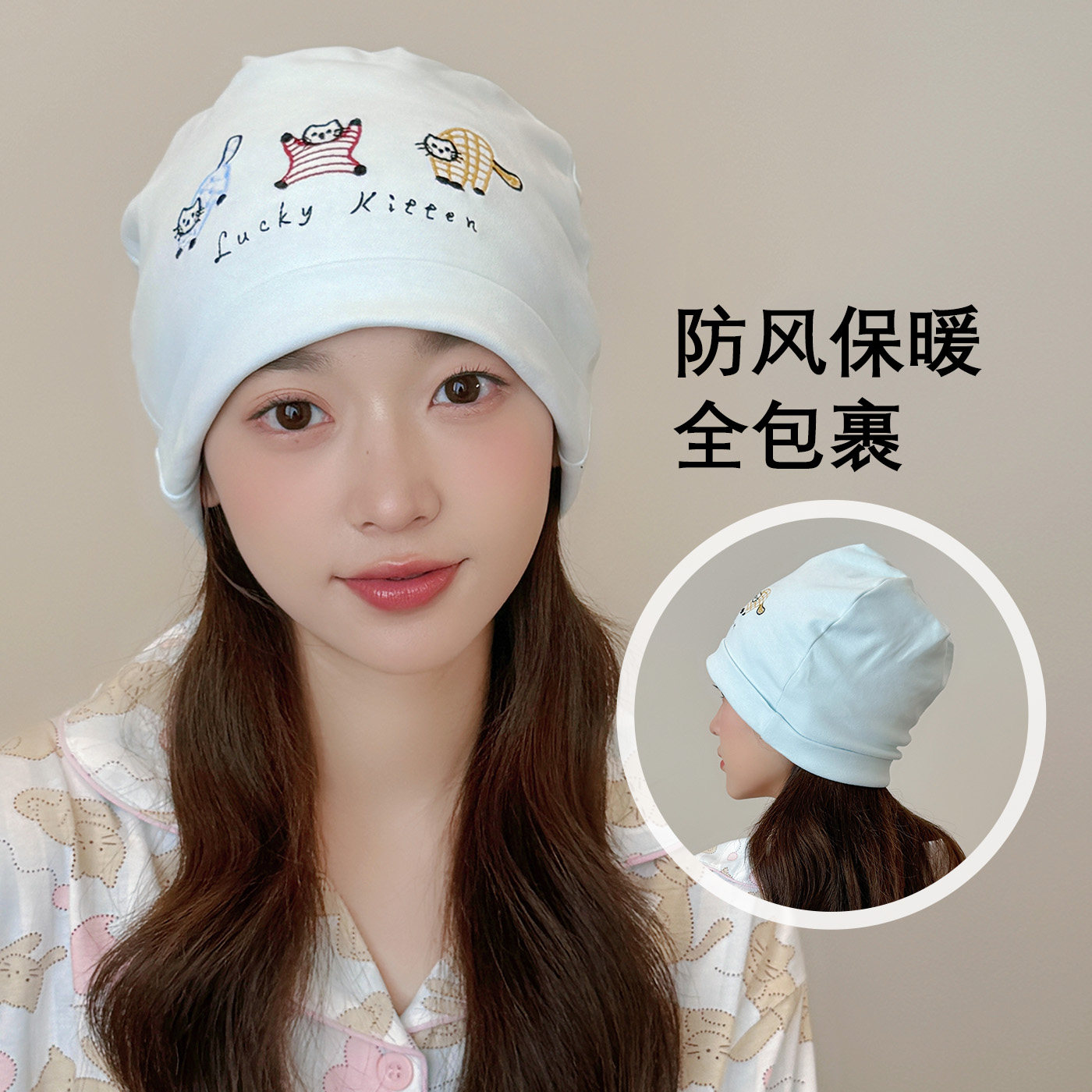 婧麒月子帽秋冬纯棉产妇帽产后坐月子头巾发带大头围孕妇防风帽子