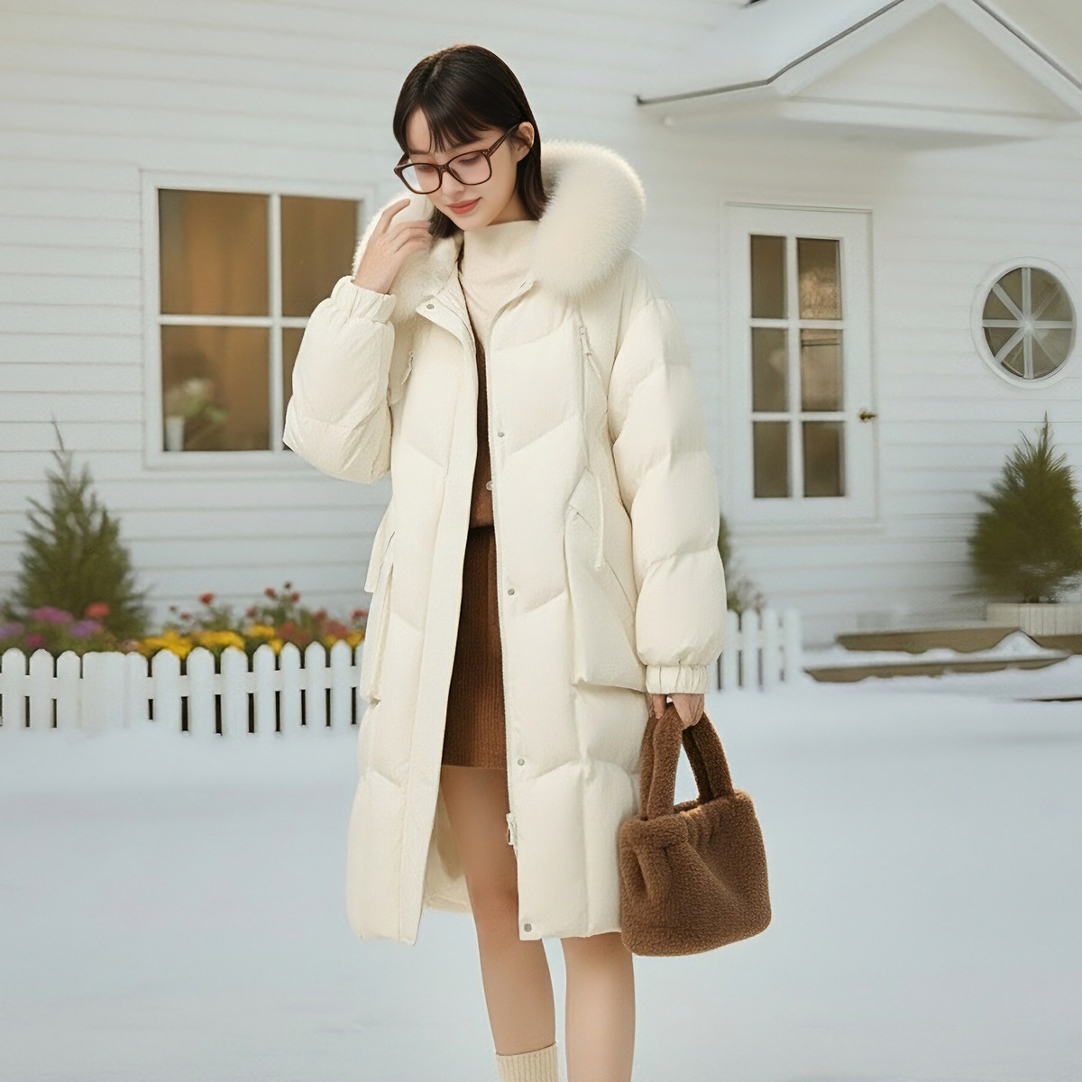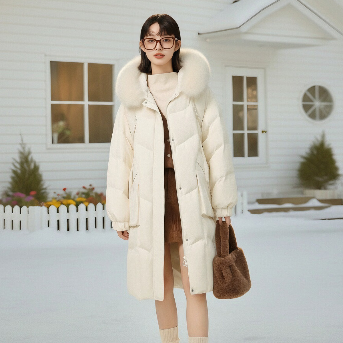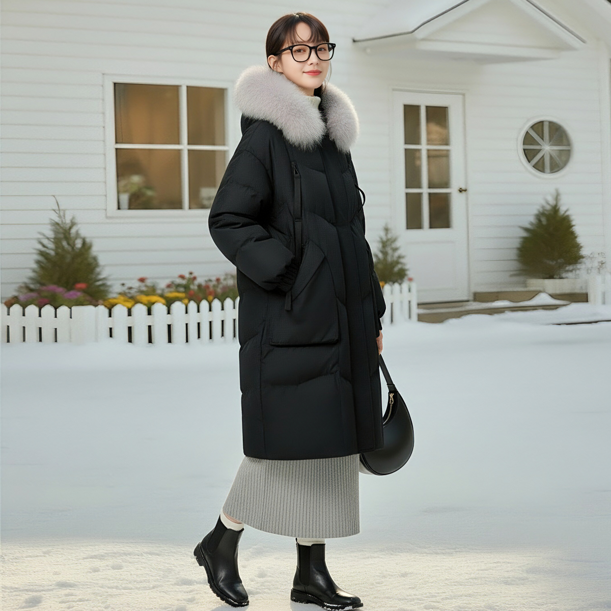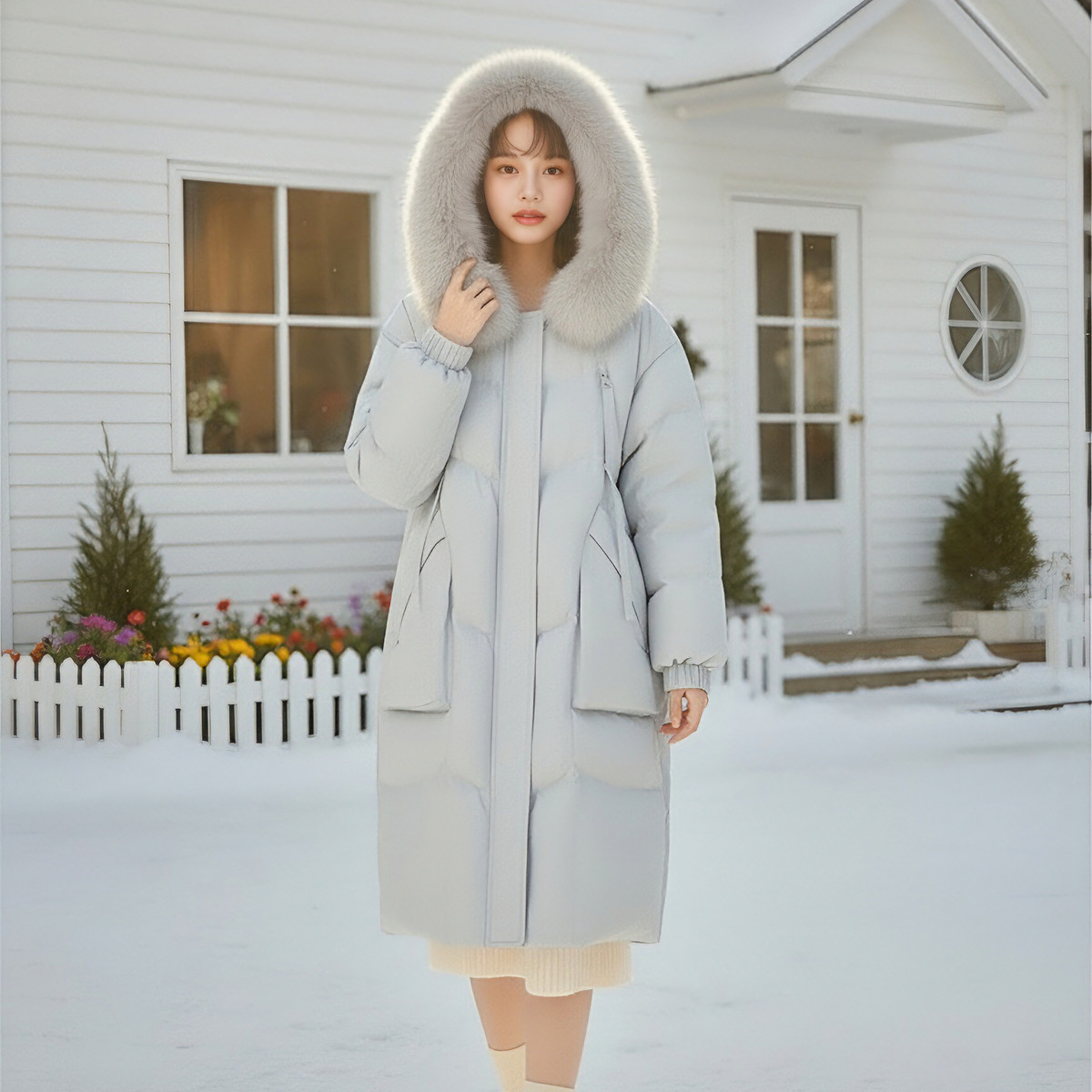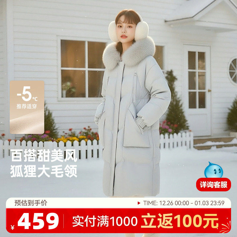 雪中飞2025秋冬女士时尚宽松狐狸毛领长款羽绒服韩版保暖抗寒百搭