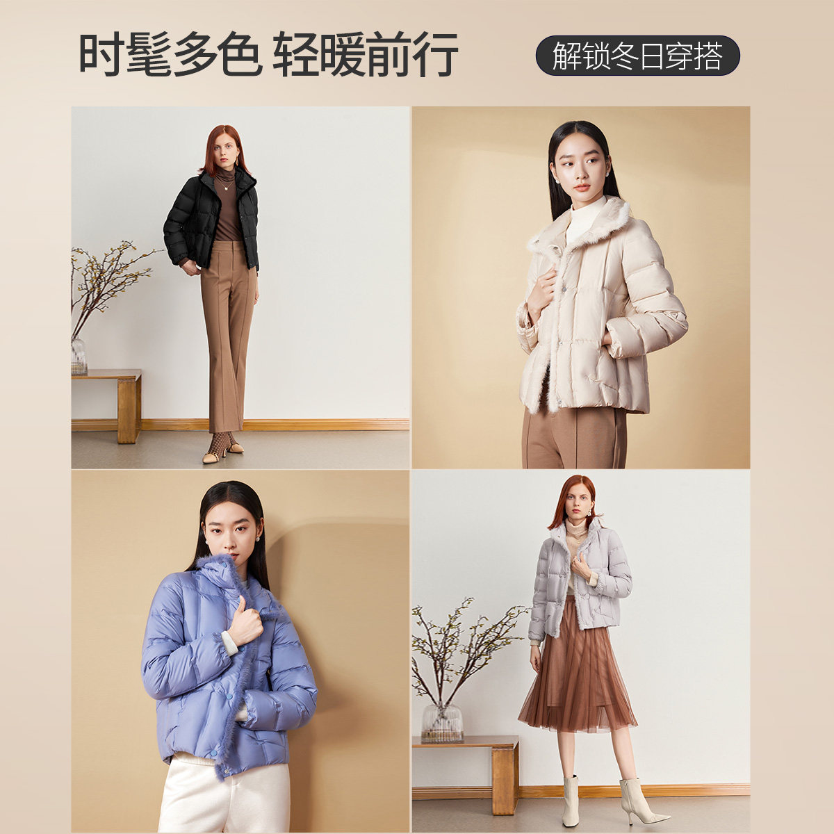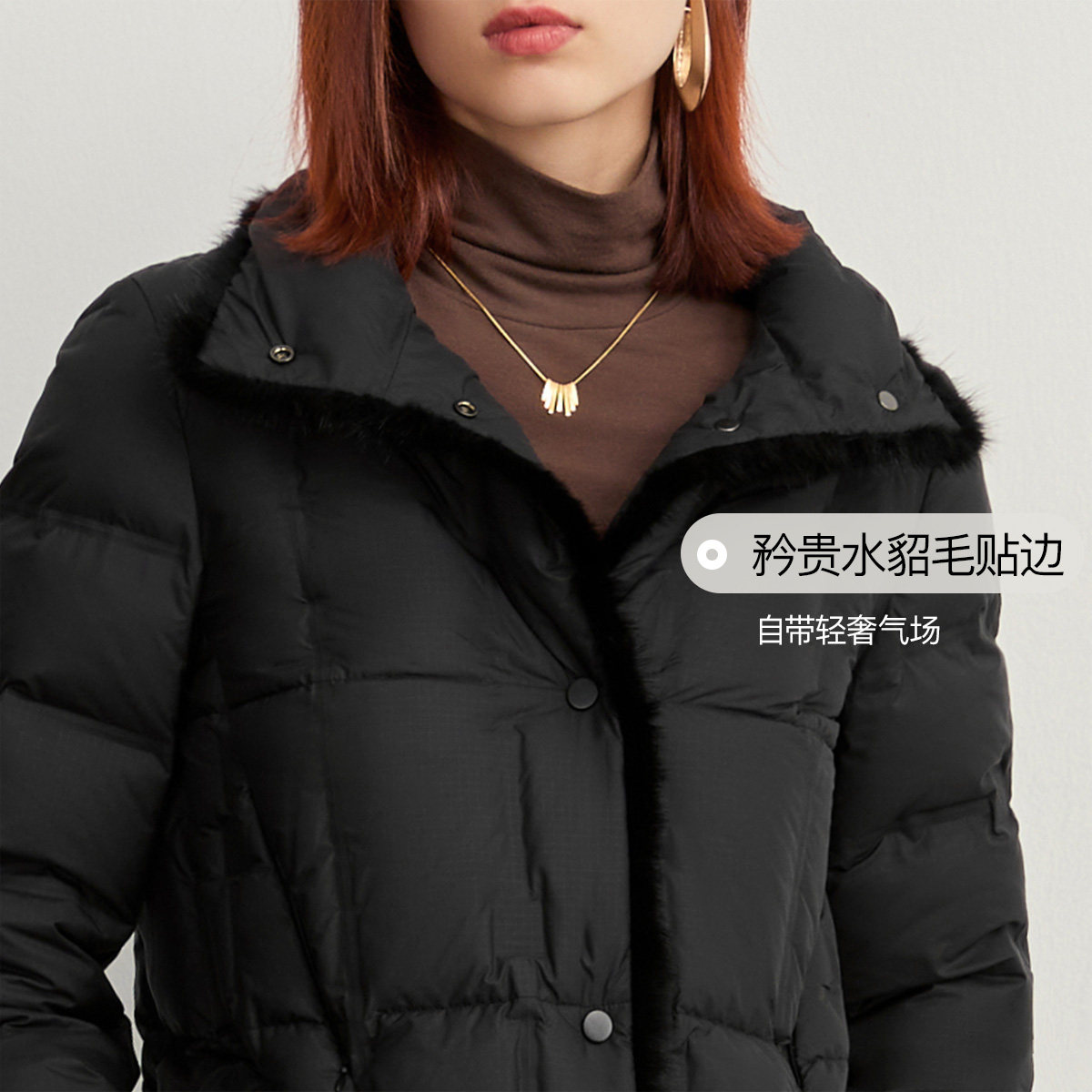 FINITY菲妮迪羽绒服2025冬季新款90白鸭绒高端水貂毛领短款外套女
