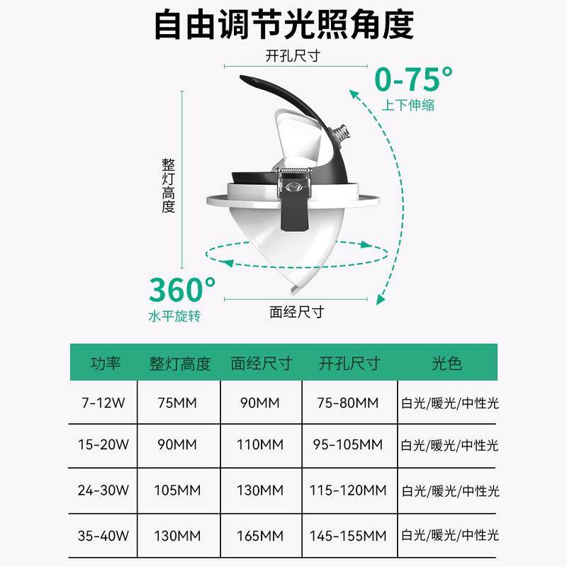 拉伸式射灯嵌入式伸缩可调节角度客厅家用象鼻灯玄关聚光灯开孔75