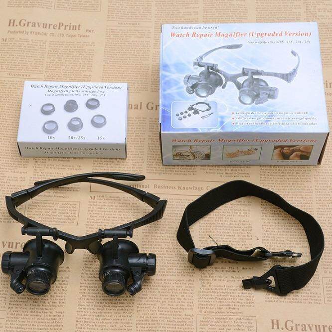 10倍15倍20倍25倍LED灯鉴定古玩珠宝钟表维修高清头戴眼镜放大镜定制