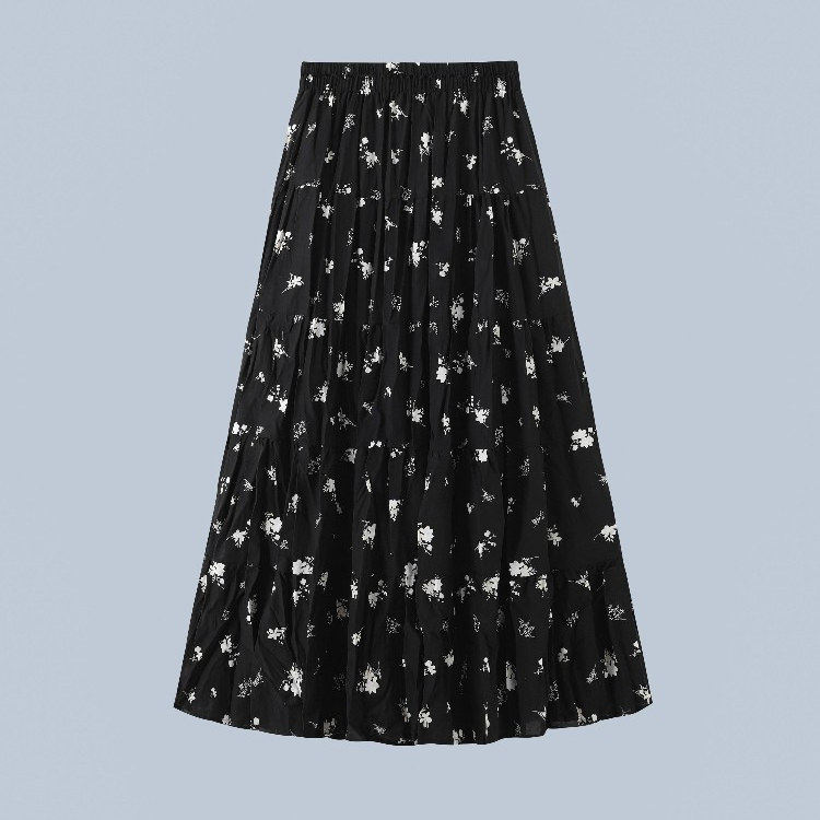 漫野大洪官方严选店高腰碎花印花半裙休闲百搭A字显瘦中长半身裙