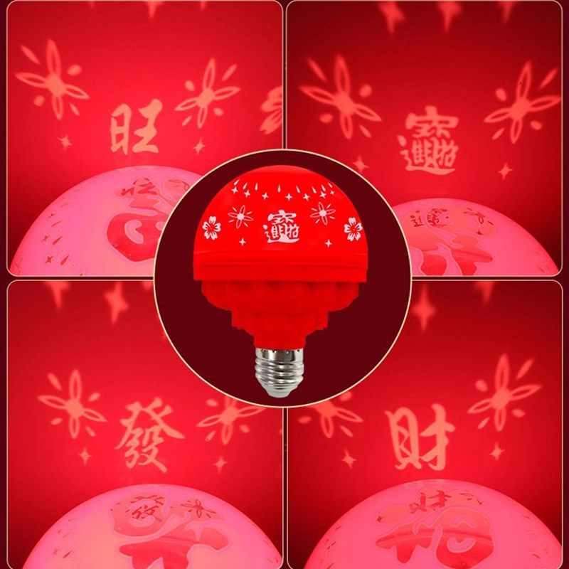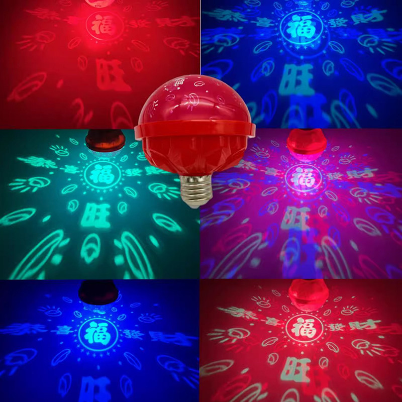 七彩福字灯泡彩灯氛围装饰灯旋转变色春节过年喜庆发财灯农村院子
