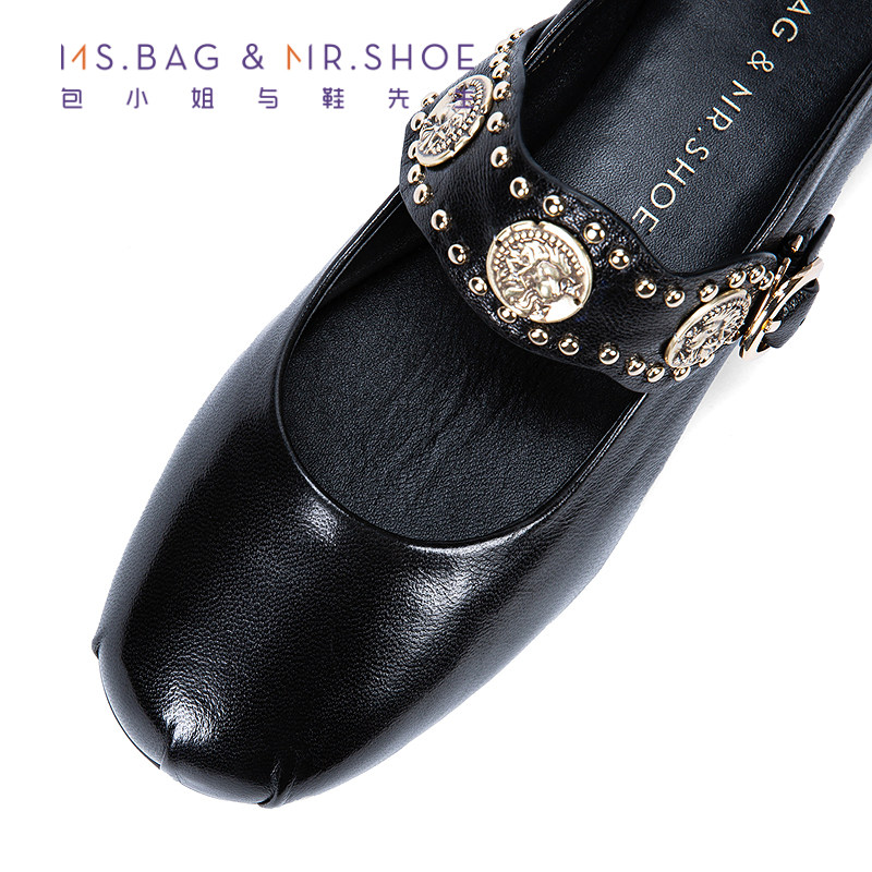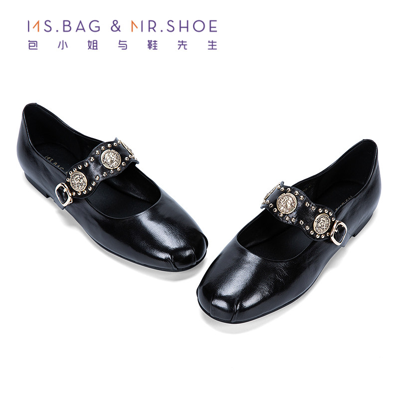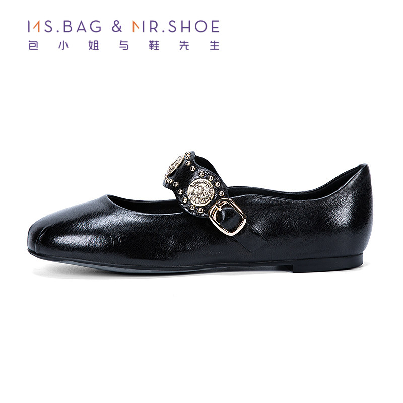 包小姐与鞋先生2026年春季新款植鞣羊皮铆钉平底玛丽珍鞋女261084