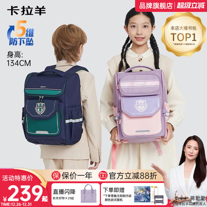 【直播加赠】卡拉羊1-4-6年级小学生书包减负护脊大嘴书包超轻大容量一年级男孩女生可爱英伦风儿童背包