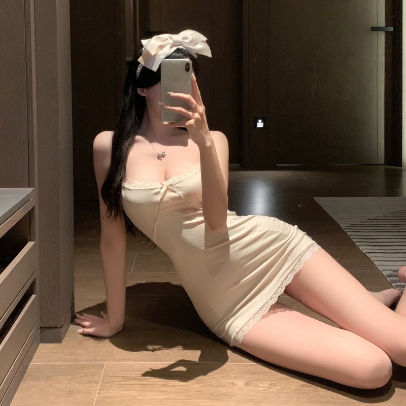 带胸垫性感睡衣女夏2025新款纯欲风冰丝蕾丝吊带裙睡裙高级感套装