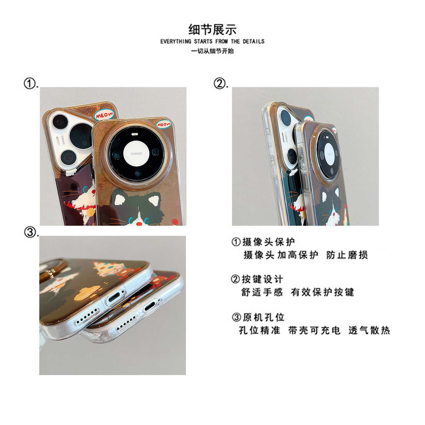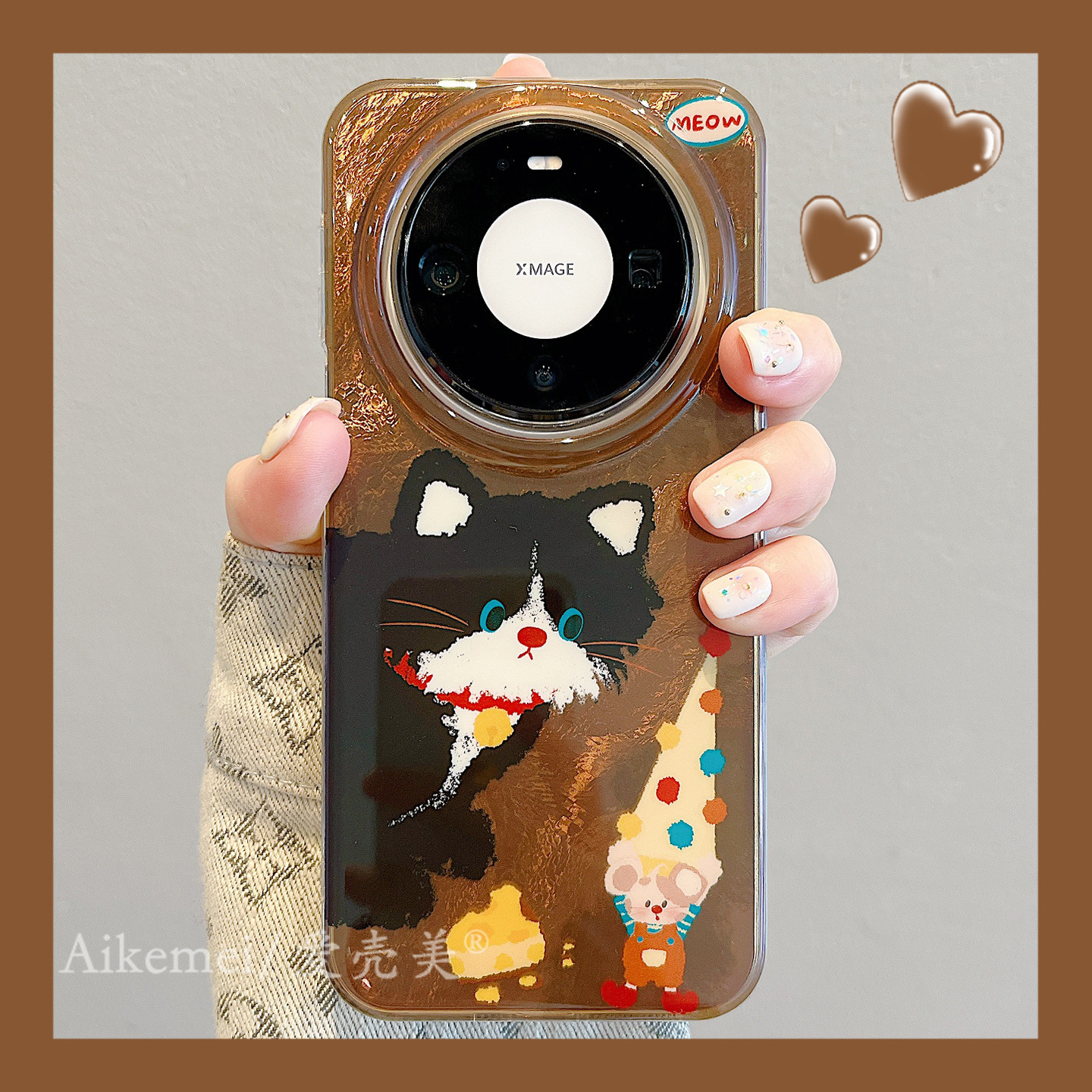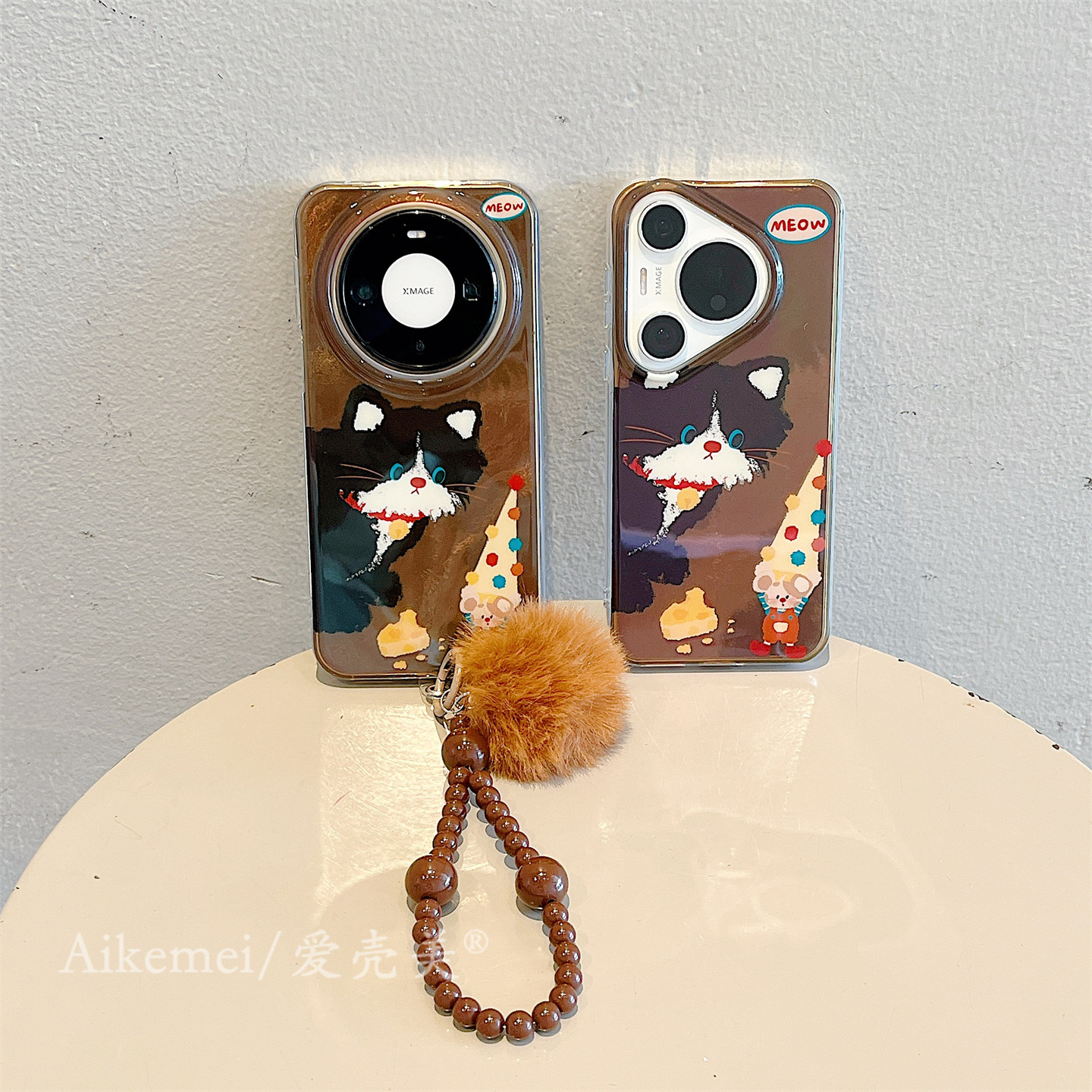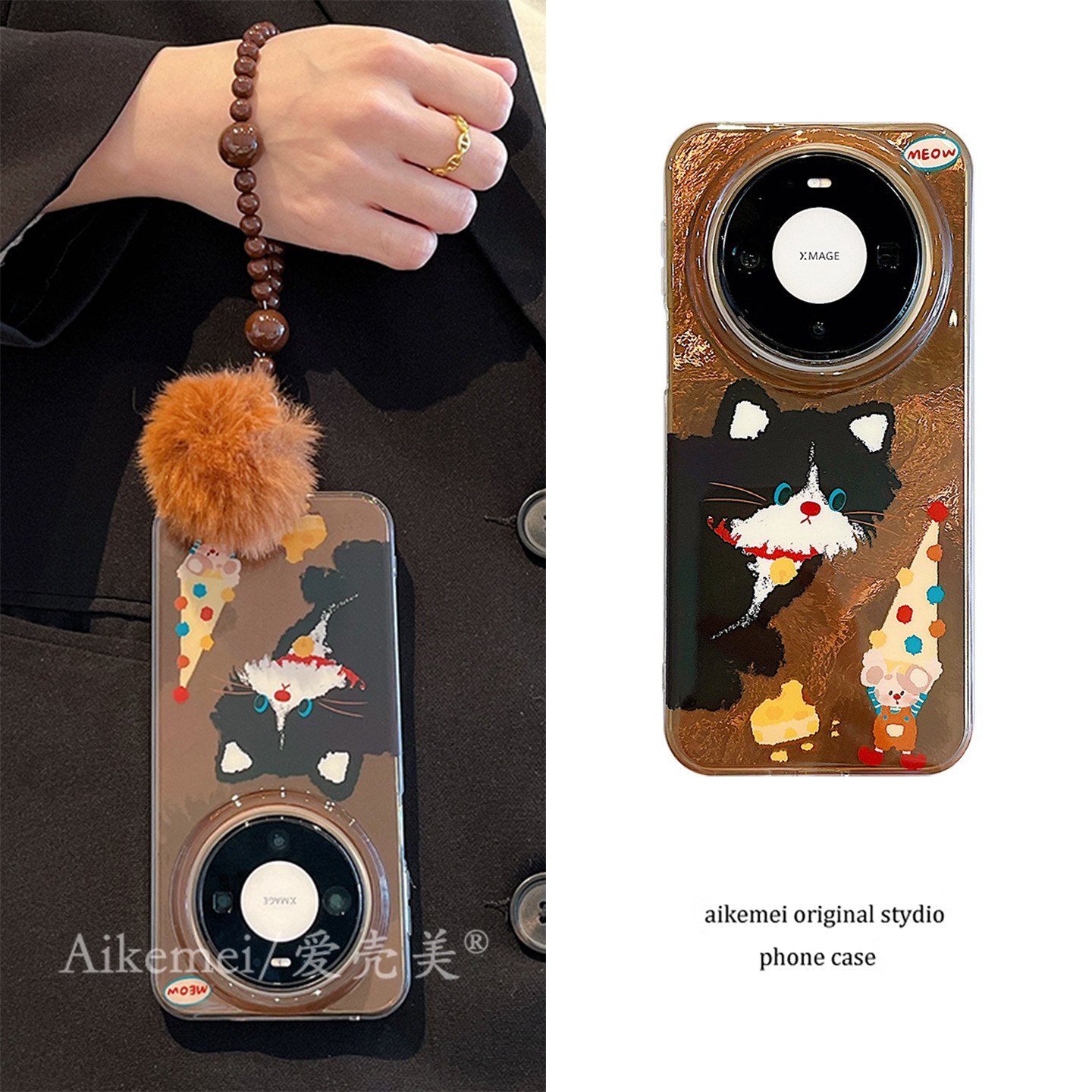 适用华为mate80promax手机壳棕底锡纸纹可爱猫咪老鼠mate70pro毛球链条mate60pro全包防摔pura80pro+卡通女款