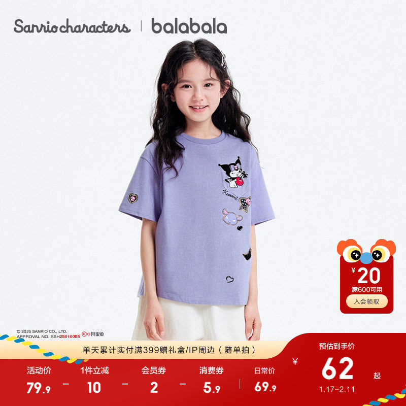 【库洛米IP】巴拉巴拉童装儿童短袖t恤女童新款夏装休闲百搭上衣