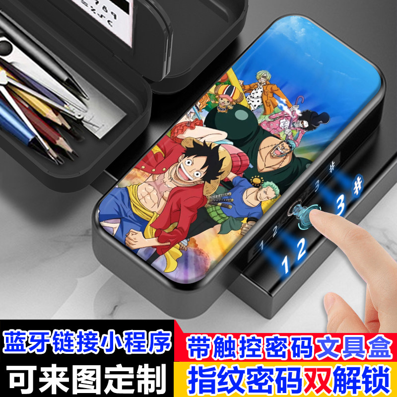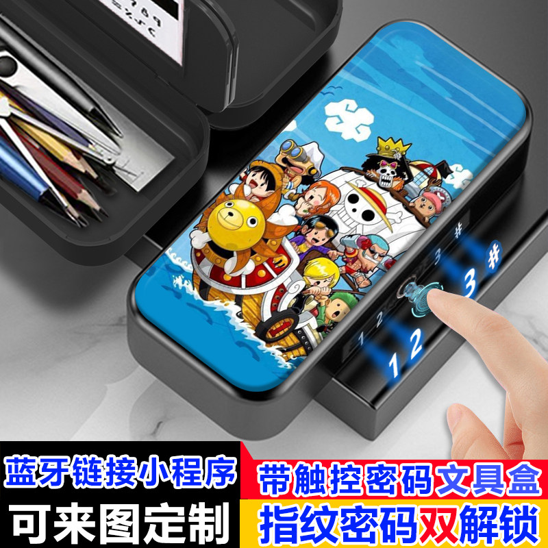 海贼王路飞索隆指纹密码双解锁文具盒小学生密码铅笔盒男孩多功能