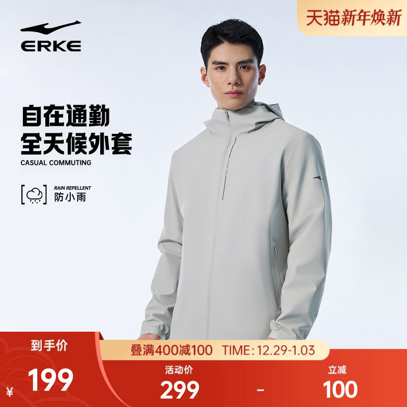 鸿星尔克外套男2025冬季新款男士通勤防小雨运动夹克风衣男装上衣