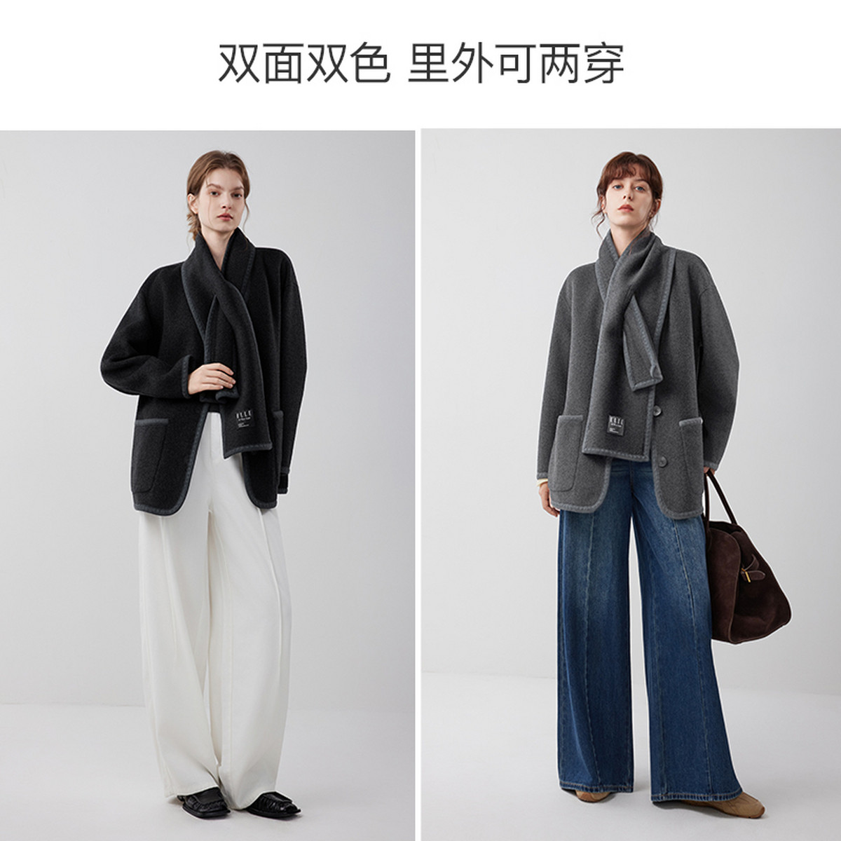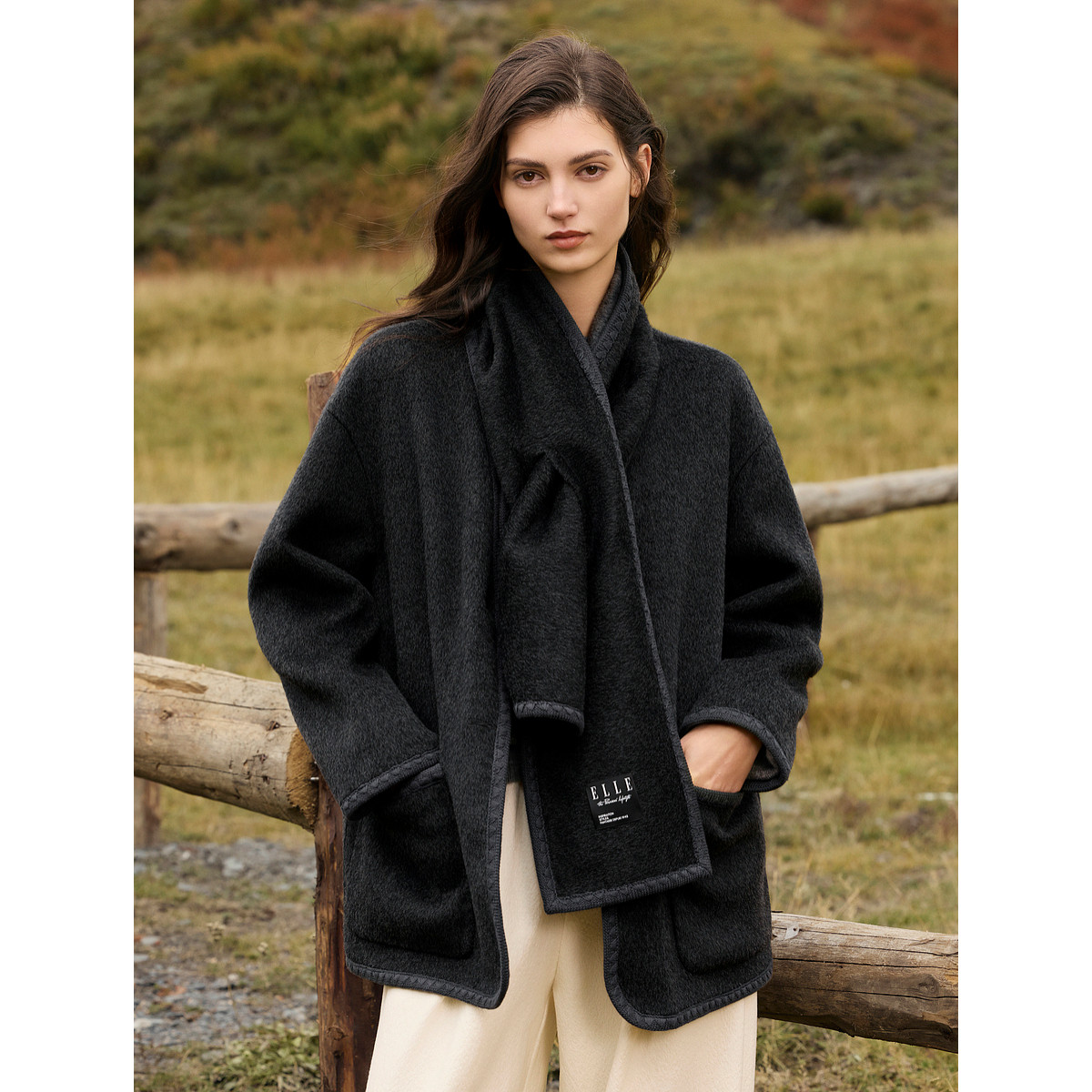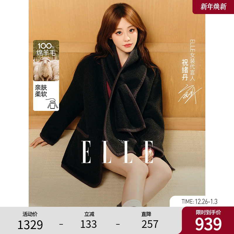 【祝绪丹同款】ELLE绵羊毛双面毛呢大衣女25冬新款绒冬随想曲外套