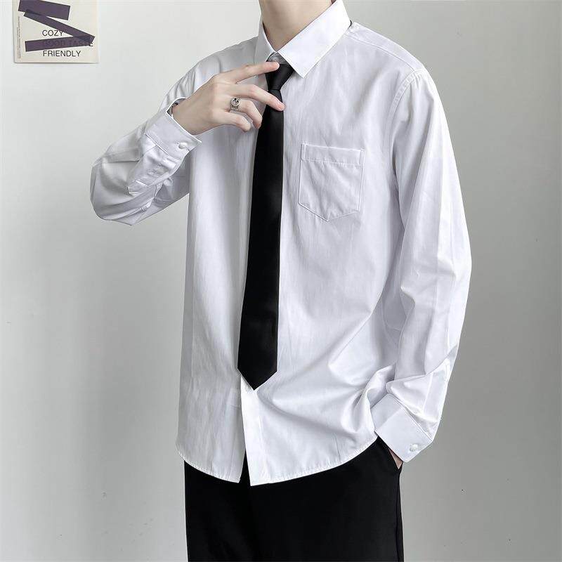 白色长袖衬衫男日系潮牌炸街潮流宽松纯色寸衫送领带情侣装dk制服