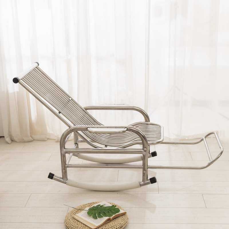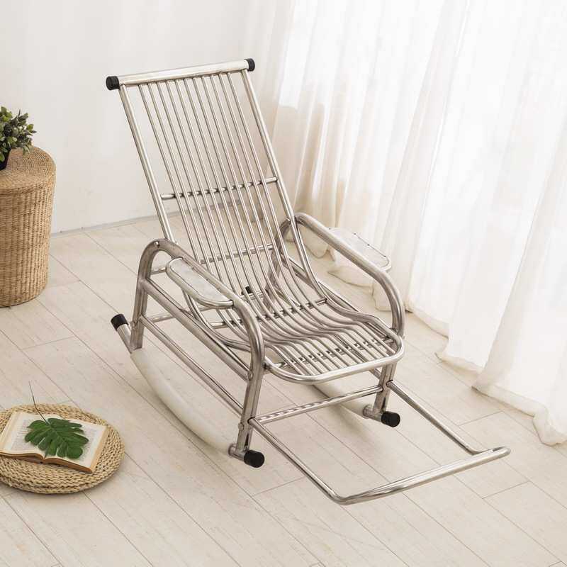 家用不锈钢摇摇椅夏天乘凉午休成人睡椅室外不倒懒人逍遥老躺椅子