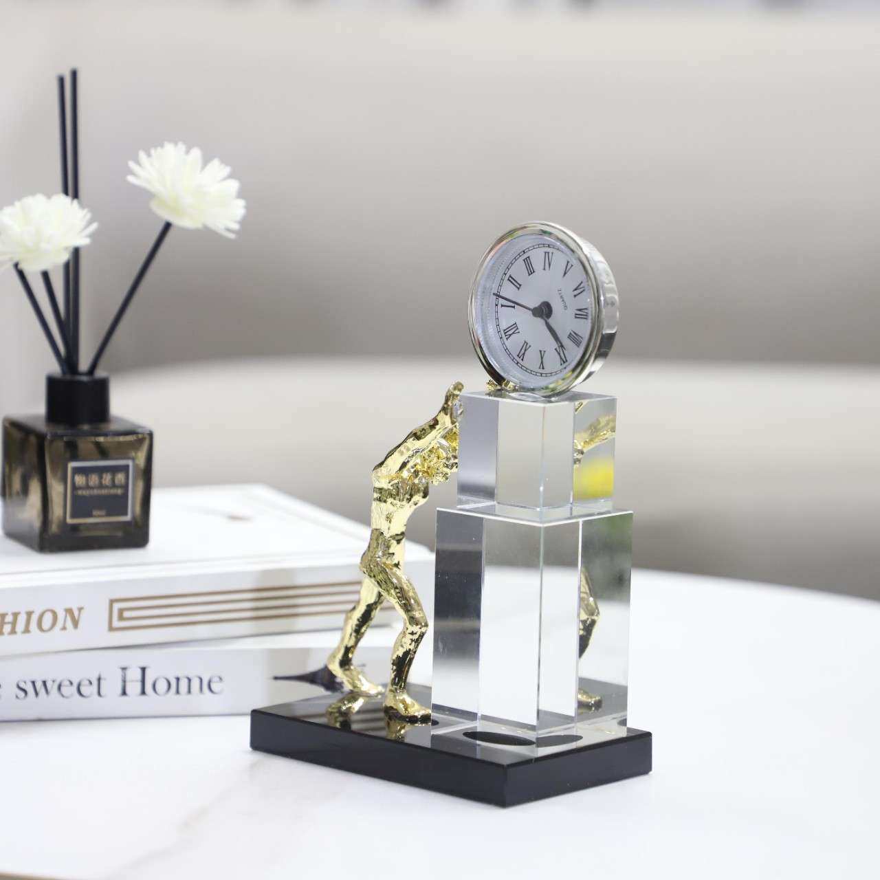 现代简约水晶推钟人个性钟表座钟装饰摆件客厅玄关电视柜家居饰品