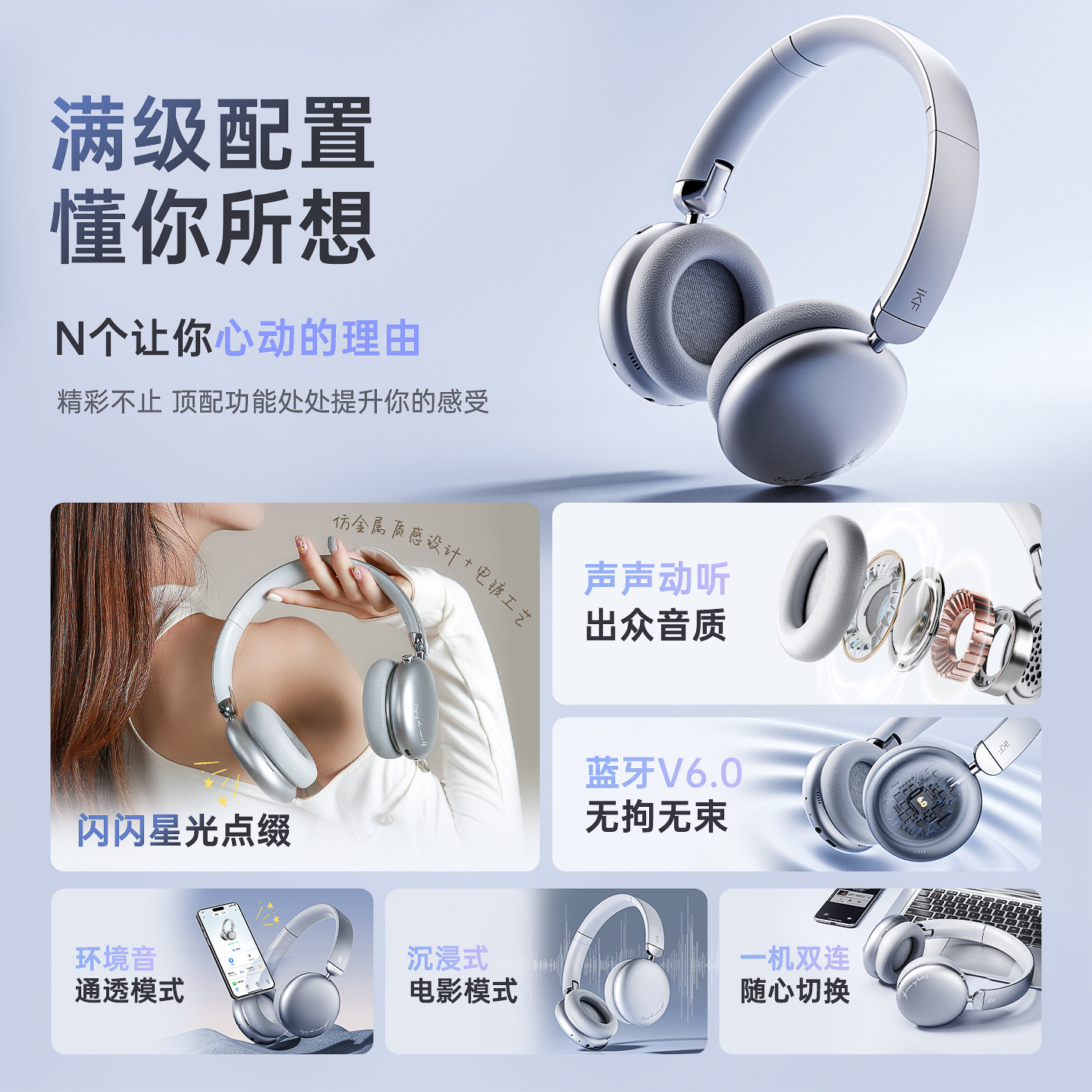 iKF E1头戴式耳机蓝牙无线降噪长待机时尚穿搭拍照男女2026年新款