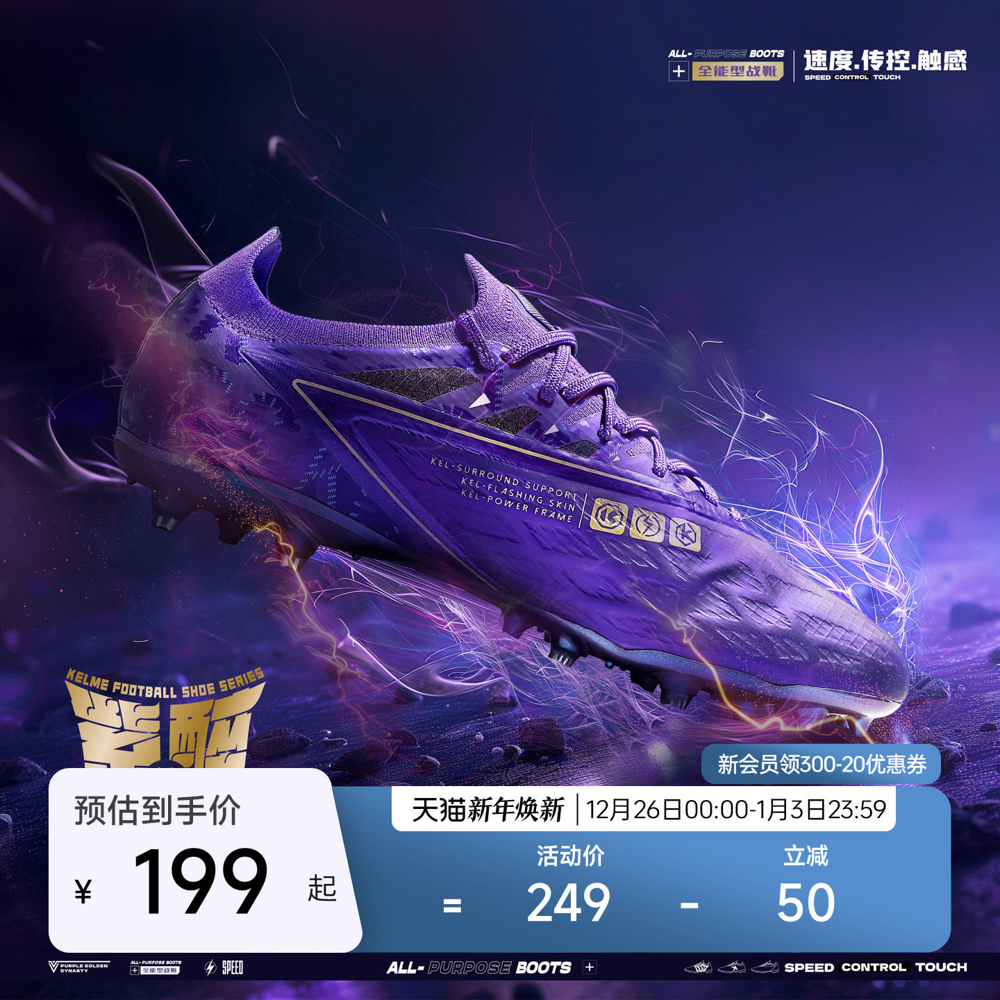 KELME/卡尔美成人足球鞋掠影1.5 MG专业比赛短钉人草日常训练鞋男