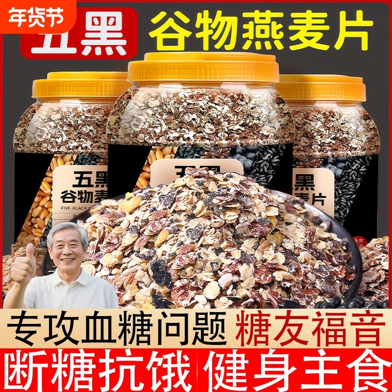 糖尿病人吃的无糖食品旗舰店五黑谷物燕麦片代餐减杂粮肥主食冲泡