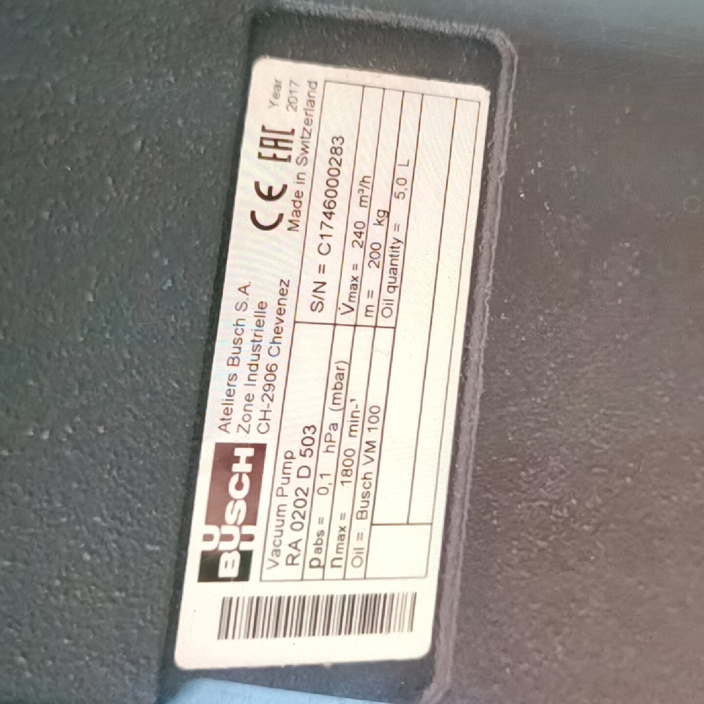 寻X普旭RA0202D503真空泵瑞士原装进口功能完好成