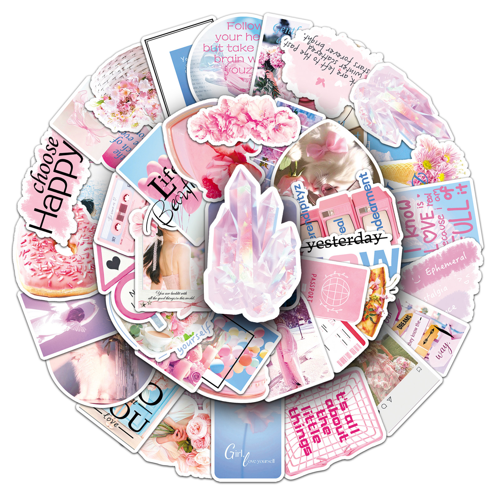 100张粉色浪漫邂逅ins贴纸咕卡女孩盐系小清新装饰防水文具日记本奶茶杯吉他滑板自行车玻璃旅行箱iPad壳贴纸