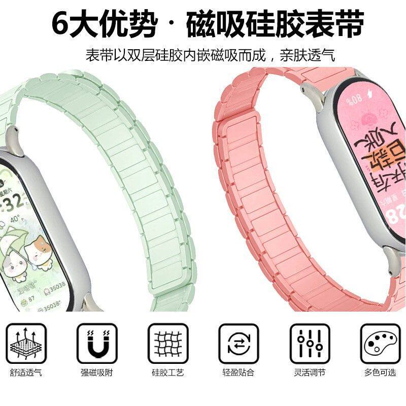 张靖仪同款适用小米手环10表带9手表8腕带7智能nfc版磁吸手腕替换带陶瓷特别版男女生春夏运动硅胶九腕带配件