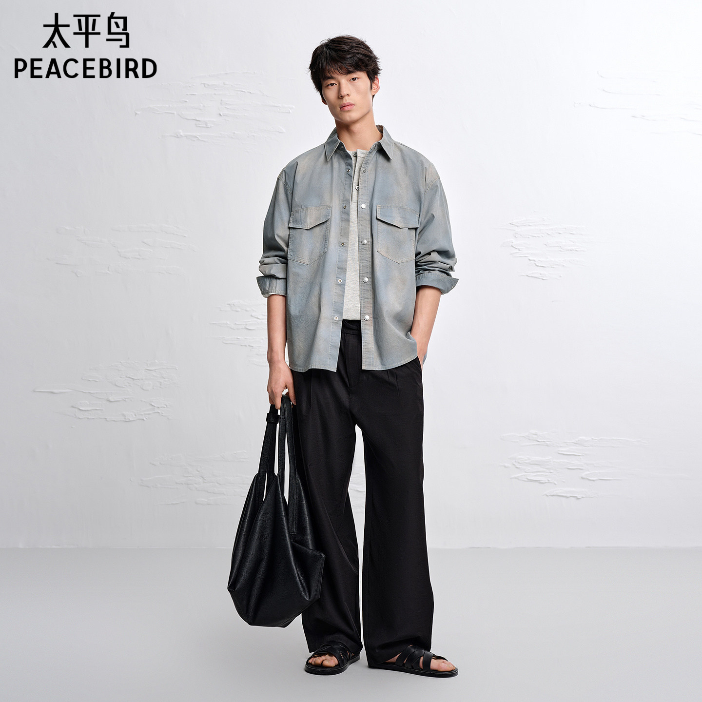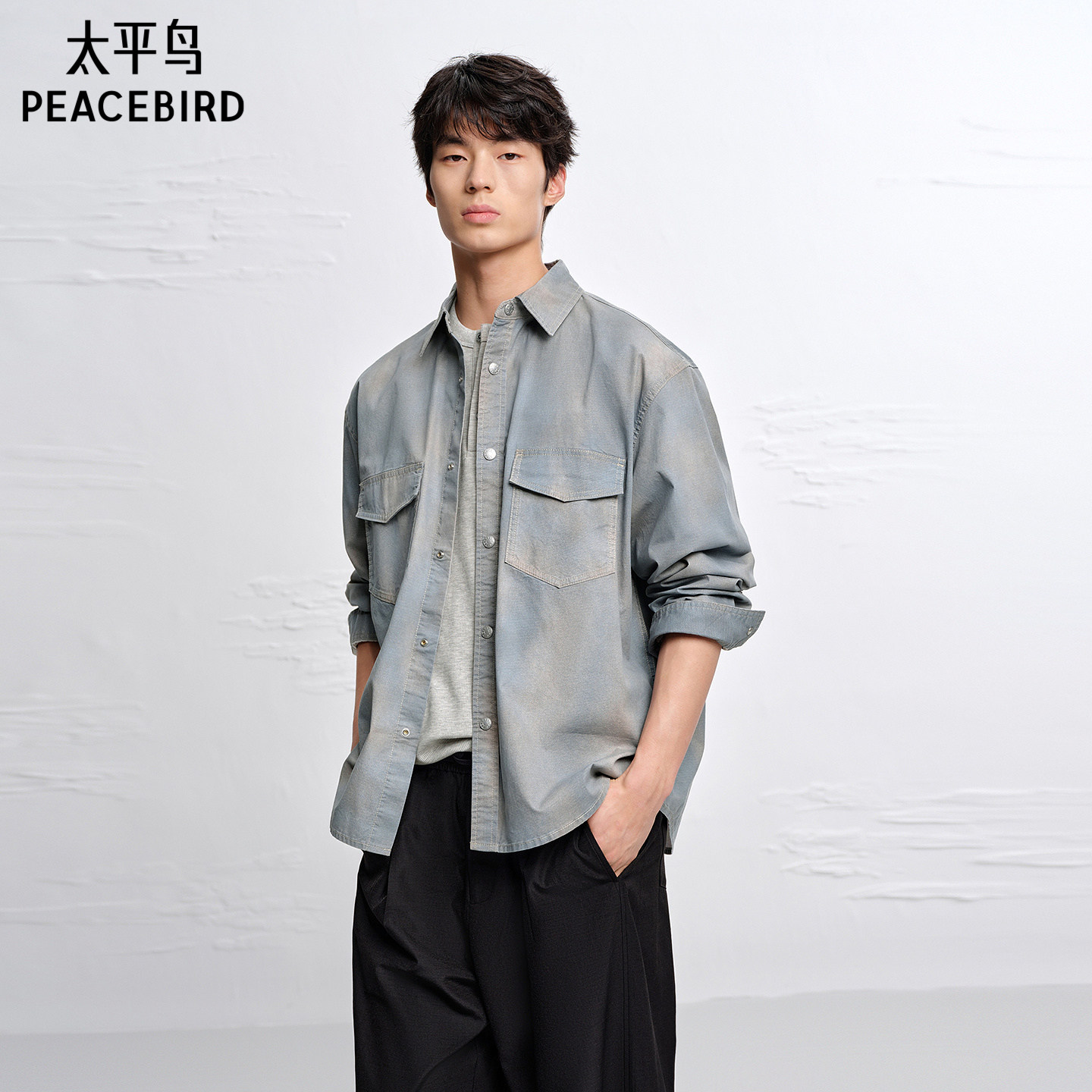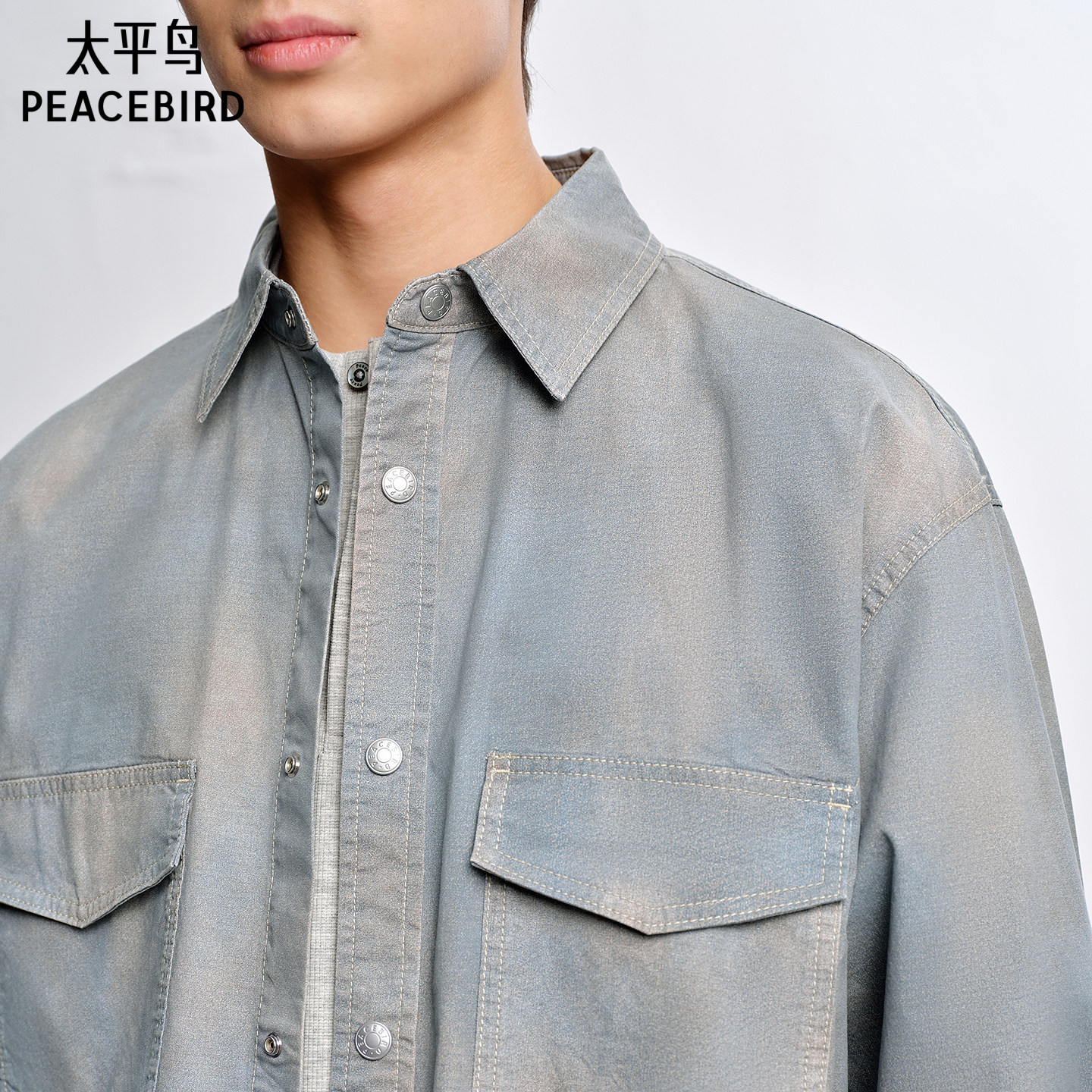 【商场同款】太平鸟男装水洗印花衬衫夏新款外穿式外套B1CHG2152