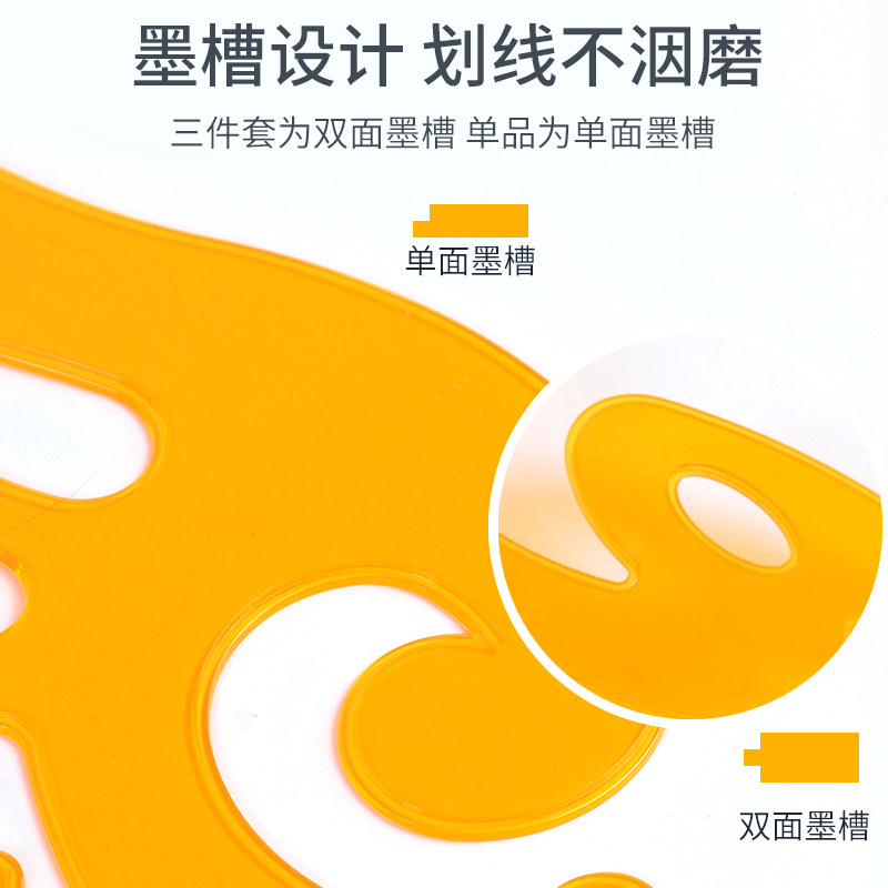 曲线板多功能曲线尺镂空打版漫画云尺服装透明美术工具尺子绘画异形三件套绘图尺弧形模板尺几何画图专用工程