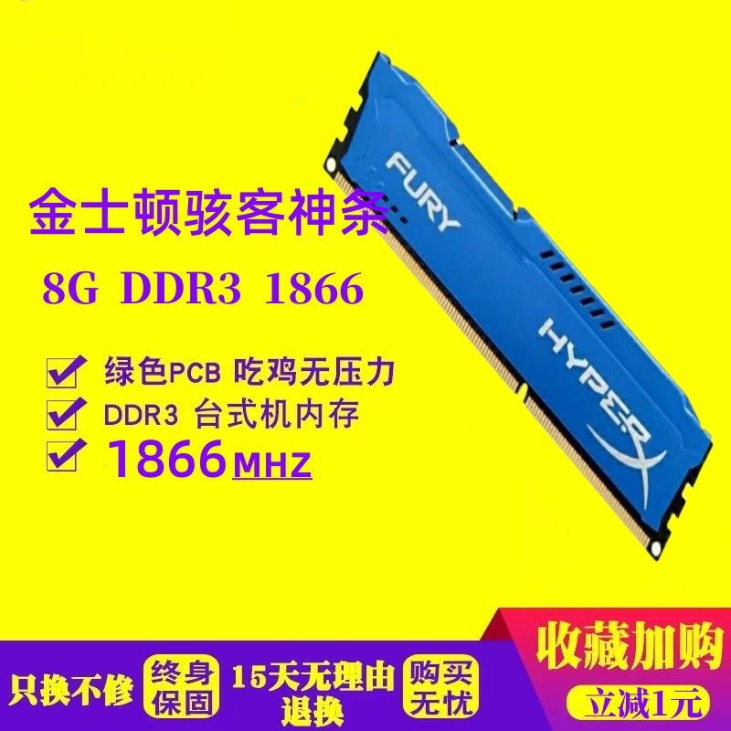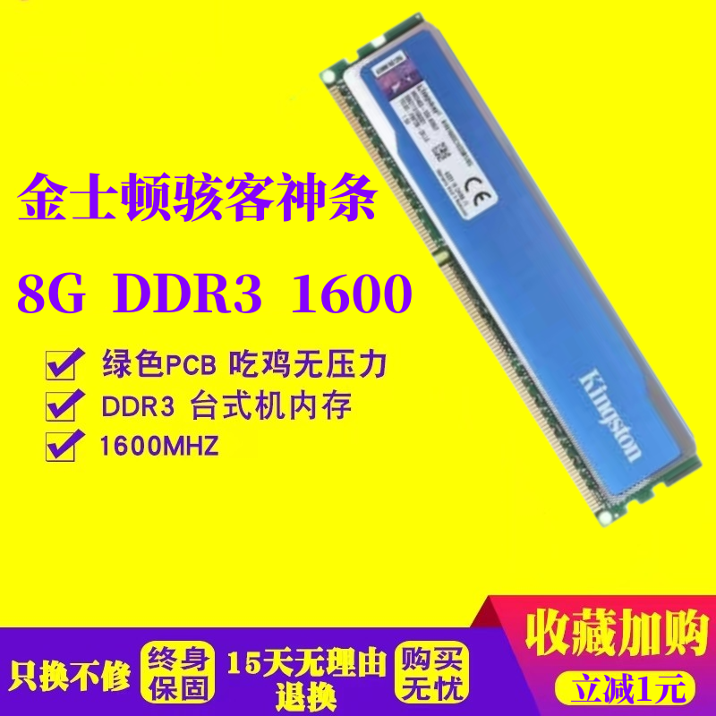 金士顿骇客神条 4G 8G DDR3 1600 台式内存条支持双通道兼容1333