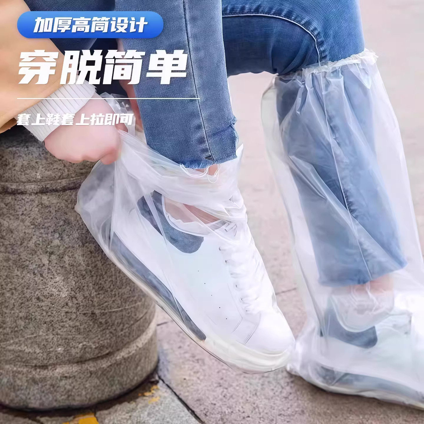 一次性雨鞋套加长加厚高筒防滑防水暴雨防湿塑料鞋套耐磨防水防污
