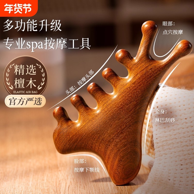 按摩梳四合一多功能头皮按摩梳头部毛囊刮痧疏通经络神器檀木梳子
